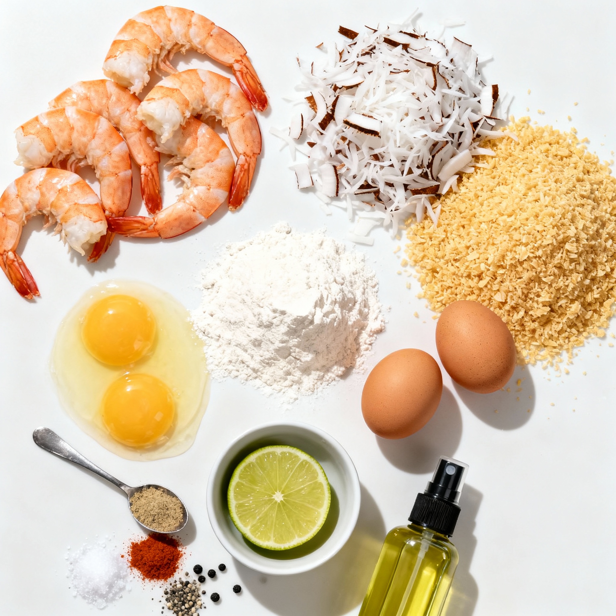 To make Air Fryer Coconut Shrimp Crunch, gather these key ingredients. First, you need shrimp. Choose large shrimp, peeled and deveined. This helps with easy cooking. Next, grab shredded coconut. You can use sweetened or unsweetened coconut. It gives a great flavor. For crunch, panko breadcrumbs are a must. They add a crispy bite. All-purpose flour helps the coating stick.