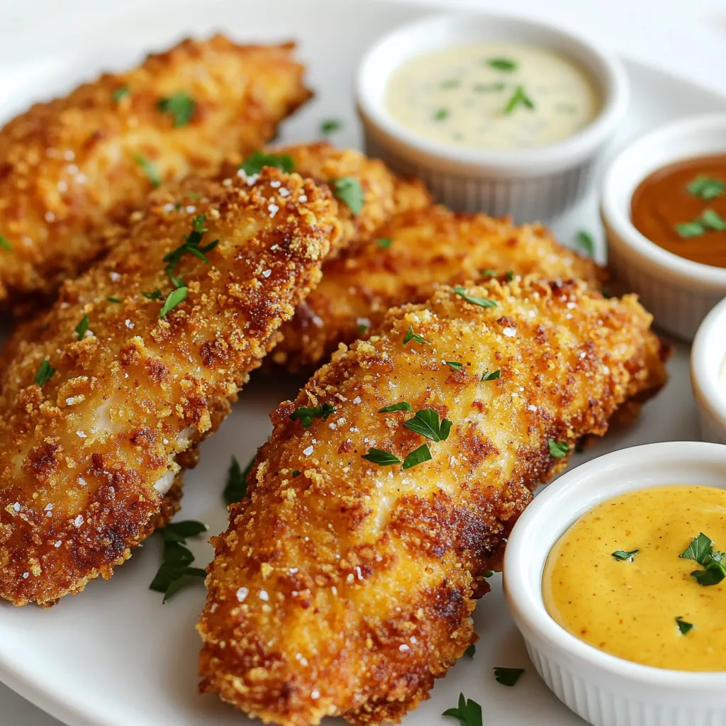 - Serve the chicken tenders on a wooden platter with a side of your favorite dipping sauces, such as honey mustard or ranch, along with a sprinkle of fresh parsley for a vibrant touch.