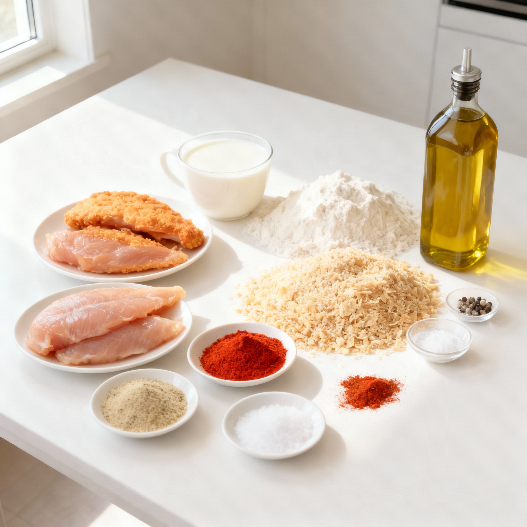 Choose fresh chicken tenders that look pink and firm. Check the sell-by date for freshness. When buying spices, opt for whole spices when possible. They stay fresh longer. Store spices in a cool, dry place away from sunlight. Use fresh buttermilk for the best flavor and texture.