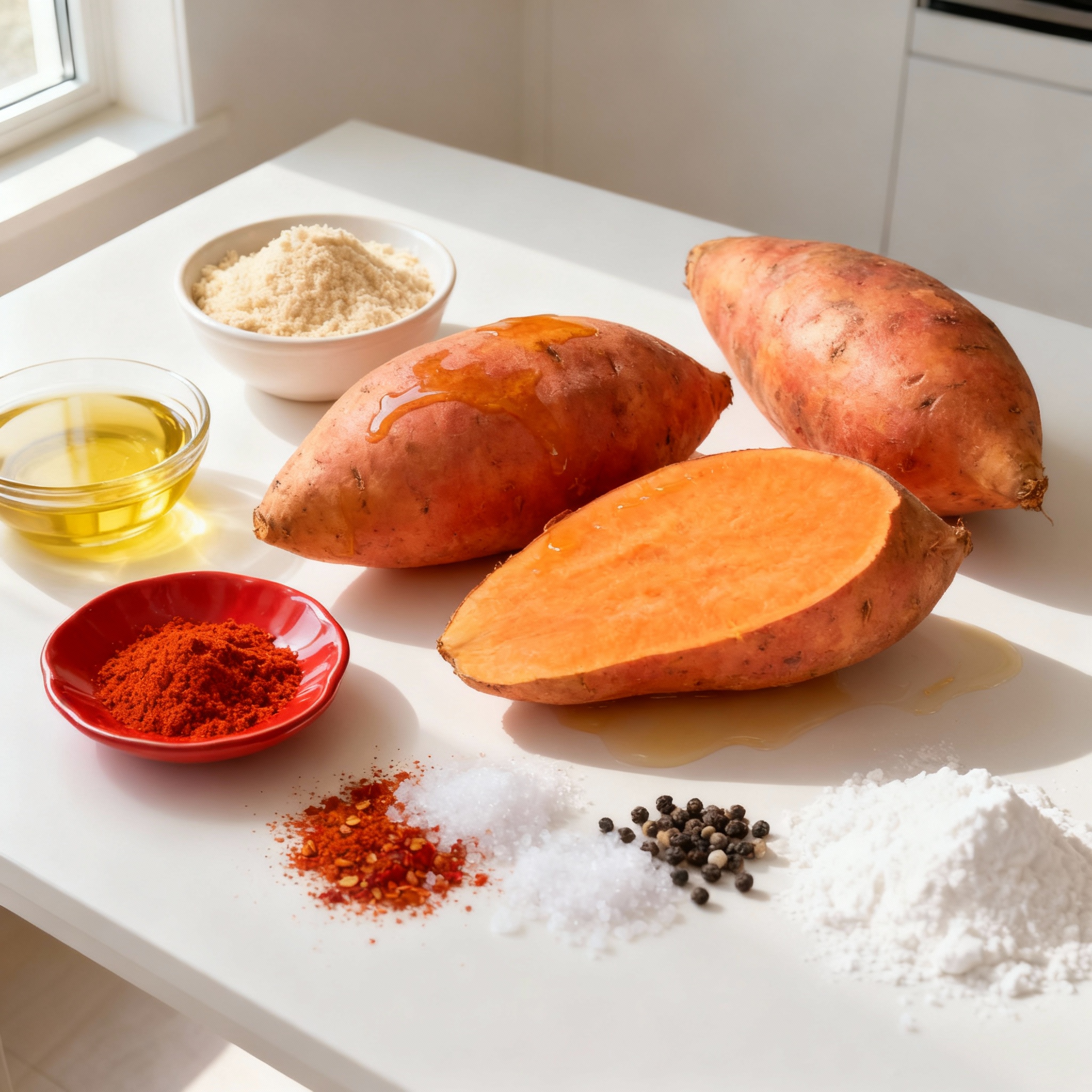 For this recipe, you need to gather all the right ingredients. Start with two large sweet potatoes. Look for firm ones with vibrant skin. Next, you will need two tablespoons of olive oil. This will help your fries get crispy.