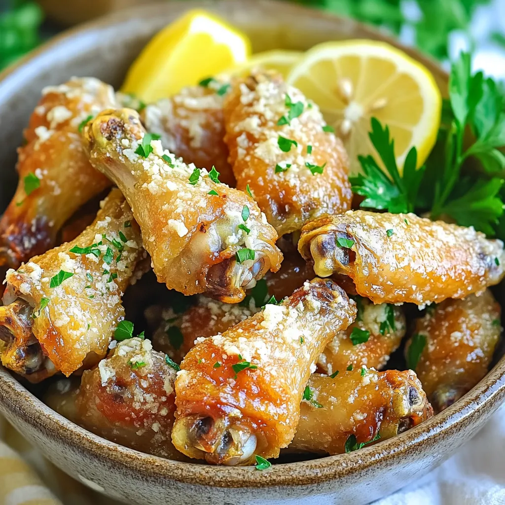 - Once the wings are ready, transfer them to a large bowl. Coat the wings well with the garlic Parmesan sauce. Serve hot, garnished with extra parsley and lemon wedges. You can also drizzle them with hot sauce for a spicy kick.
