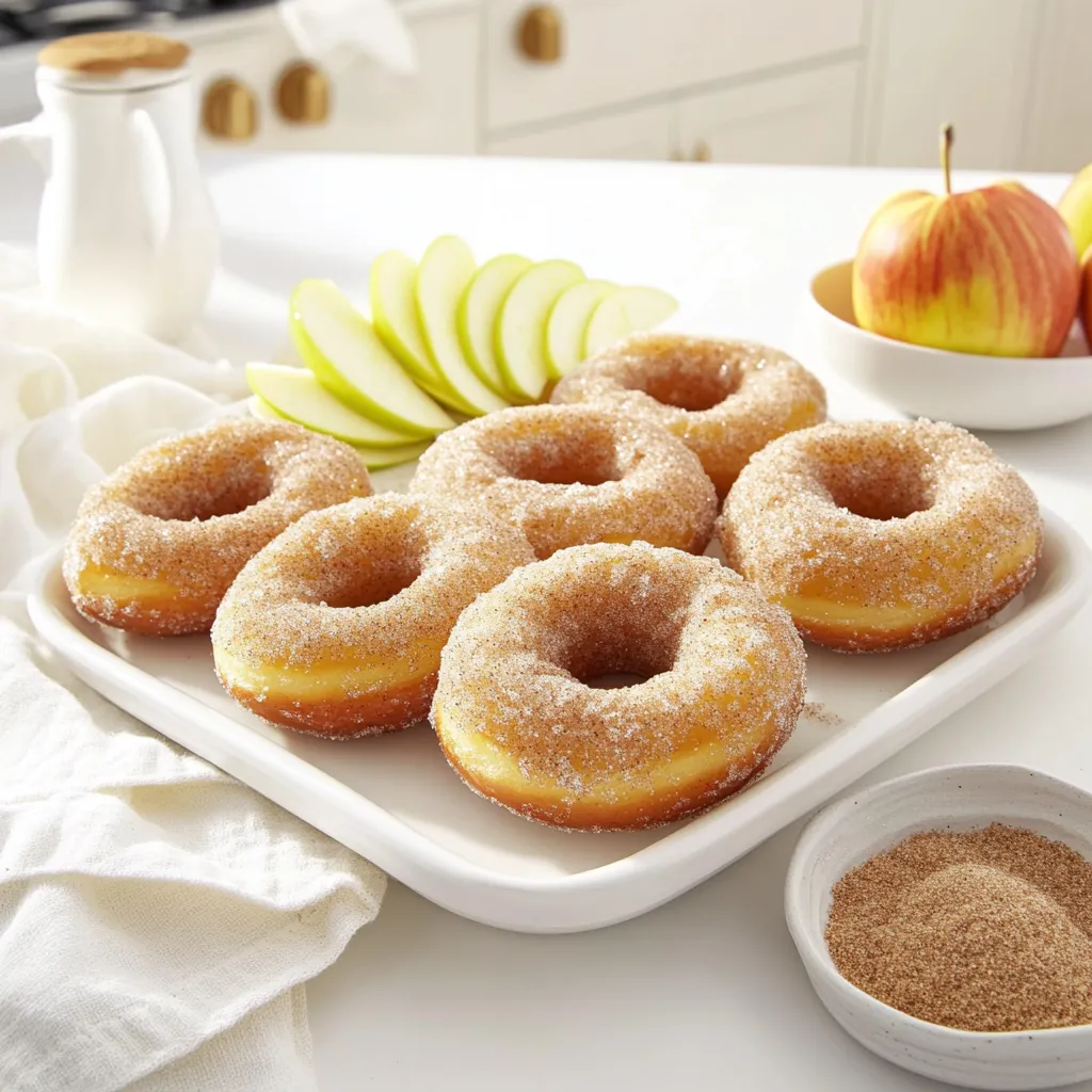 - Garnish: Add sliced fresh apples around the donuts. This adds color and freshness.