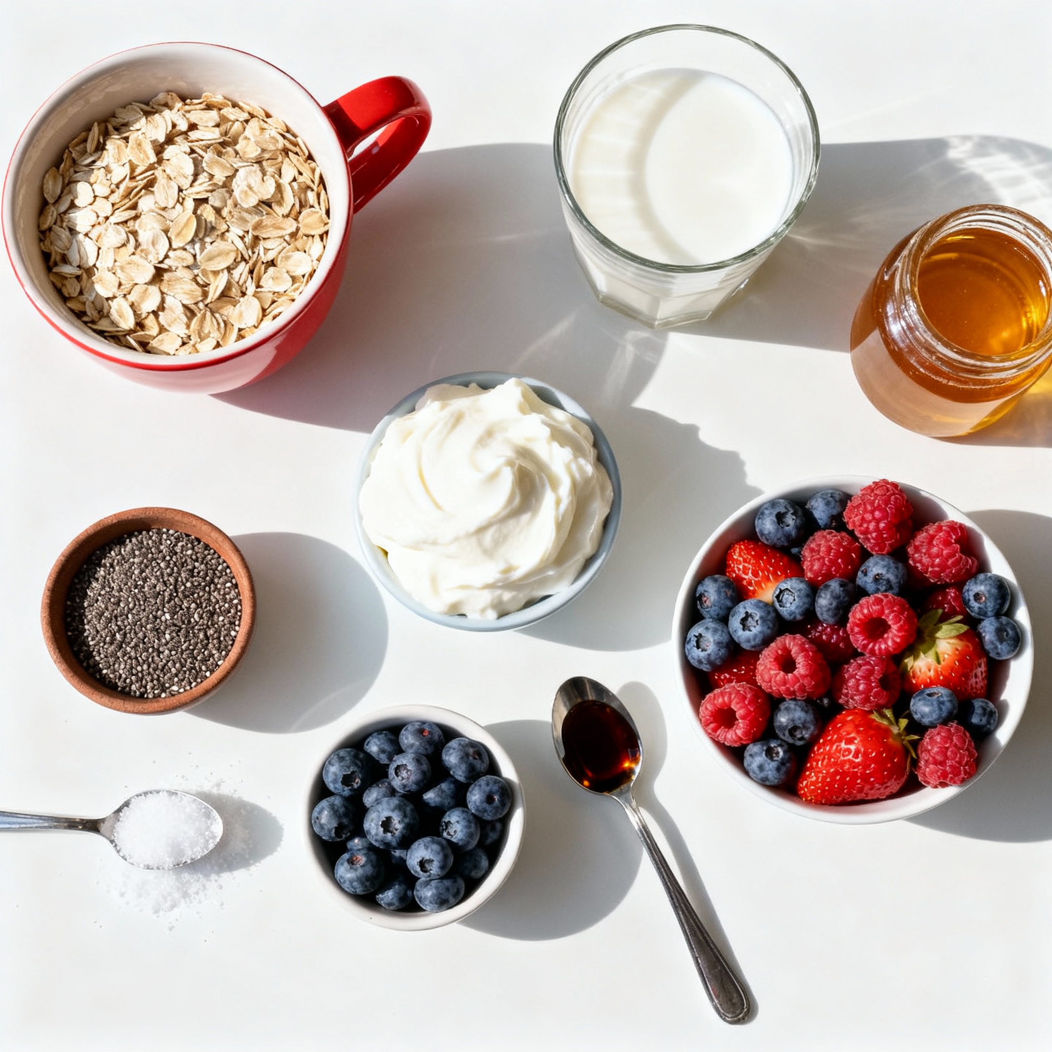 Mixed berries bring a burst of flavor and color. You can use blueberries, strawberries, or raspberries. Chia seeds add more protein and fiber, while honey or maple syrup gives a touch of sweetness, though it’s optional. A pinch of salt enhances all the flavors.