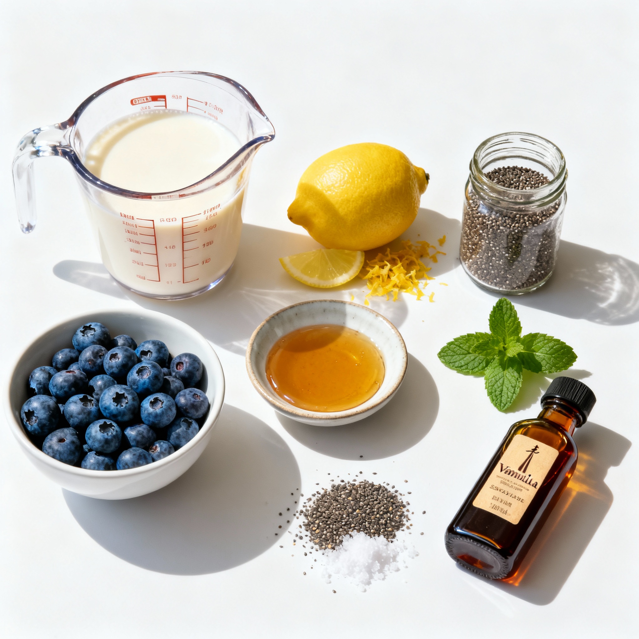 Main Ingredients for Blueberry Lemon Chia Pudding
