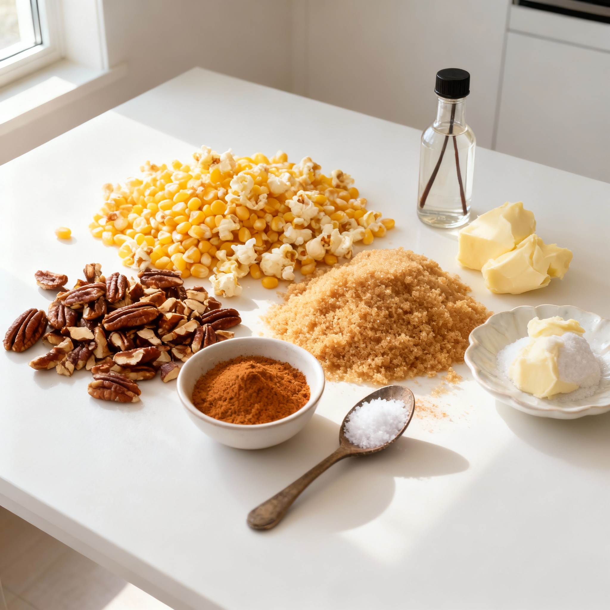 Gathering the right ingredients is key to making Brown Sugar Cinnamon Pecan Popcorn. First, you need popcorn kernels. Choose fresh ones for the best pop. Next, get chopped pecans. They add crunch and flavor. Brown sugar gives the popcorn its sweet, caramel-like taste. Unsalted butter helps bind everything together.