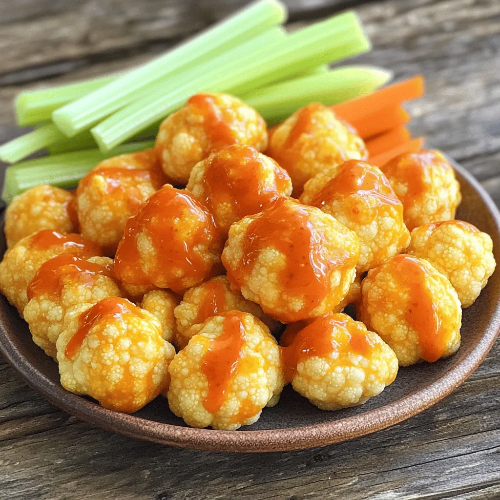 For a great presentation, serve your buffalo cauliflower bites on a platter. Line it with fresh celery and carrot sticks. This adds color and crunch. Drizzle extra buffalo sauce on top for flavor and eye appeal. Offer a side of creamy ranch or blue cheese dressing for dipping. This combo makes for a fun and tasty experience for everyone!