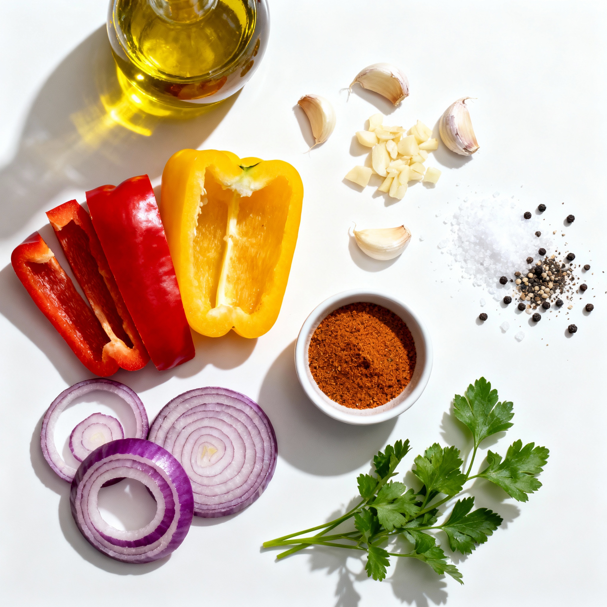 To start, you need fresh ingredients. The chicken will be the star, and it should be boneless and skinless for easy cooking. The bell peppers add color and crunch. I like using red and yellow for a bright look. The red onion gives a sweet bite that pairs well with the spice.