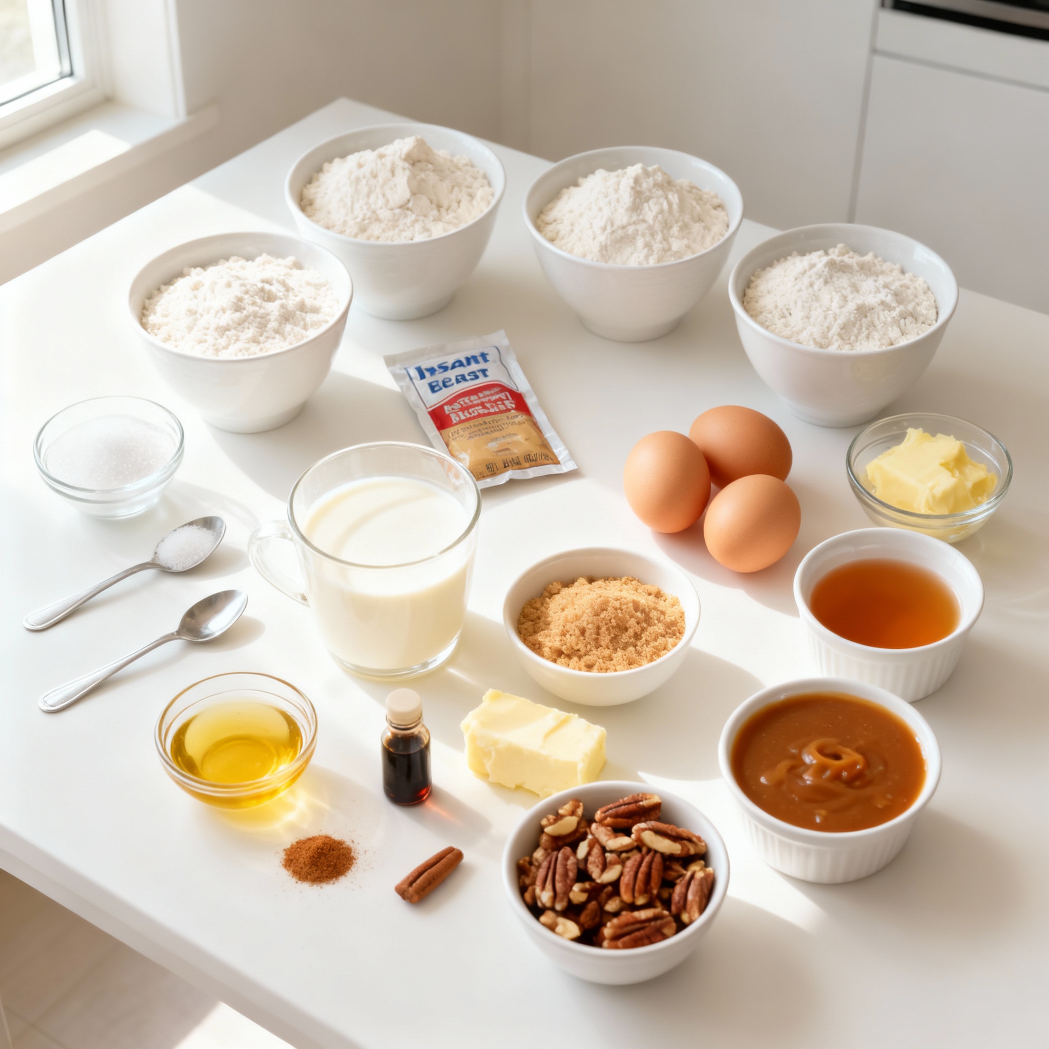 Each ingredient plays a key role in the flavor and texture of these sticky buns. The all-purpose flour gives the buns structure. The instant yeast helps them rise quickly. Granulated sugar adds sweetness, while salt balances the flavors.