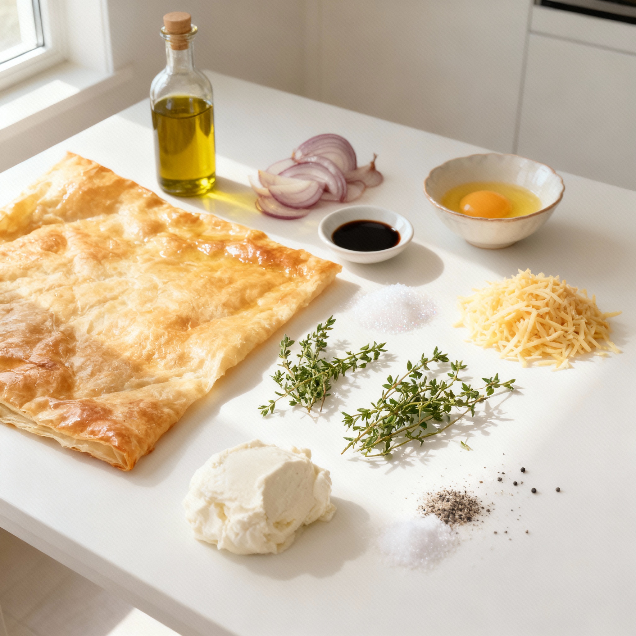 - Puff Pastry: Use one sheet of thawed puff pastry. It gives a flaky base.