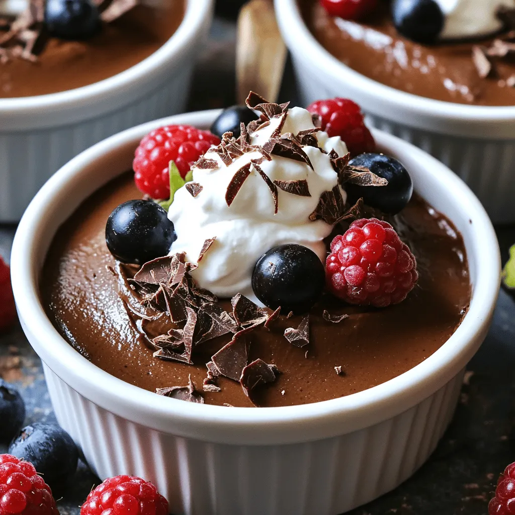 Once the mousse is creamy, transfer it to your favorite serving dishes. Chill them in the fridge for at least 30 minutes. This helps the mousse set. Before serving, add your choice of toppings like whipped coconut cream, fresh berries, or shaved chocolate.