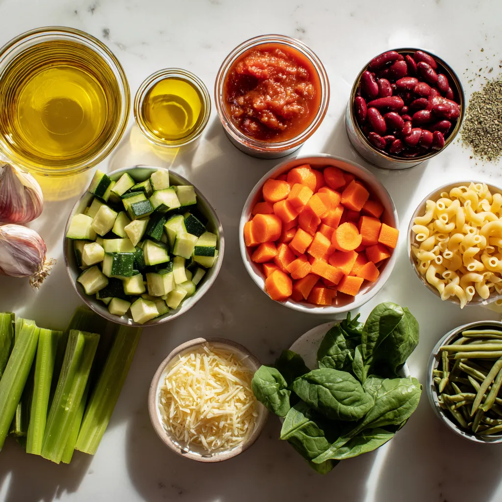 To make Copycat Minestrone Soup, gather these key ingredients: