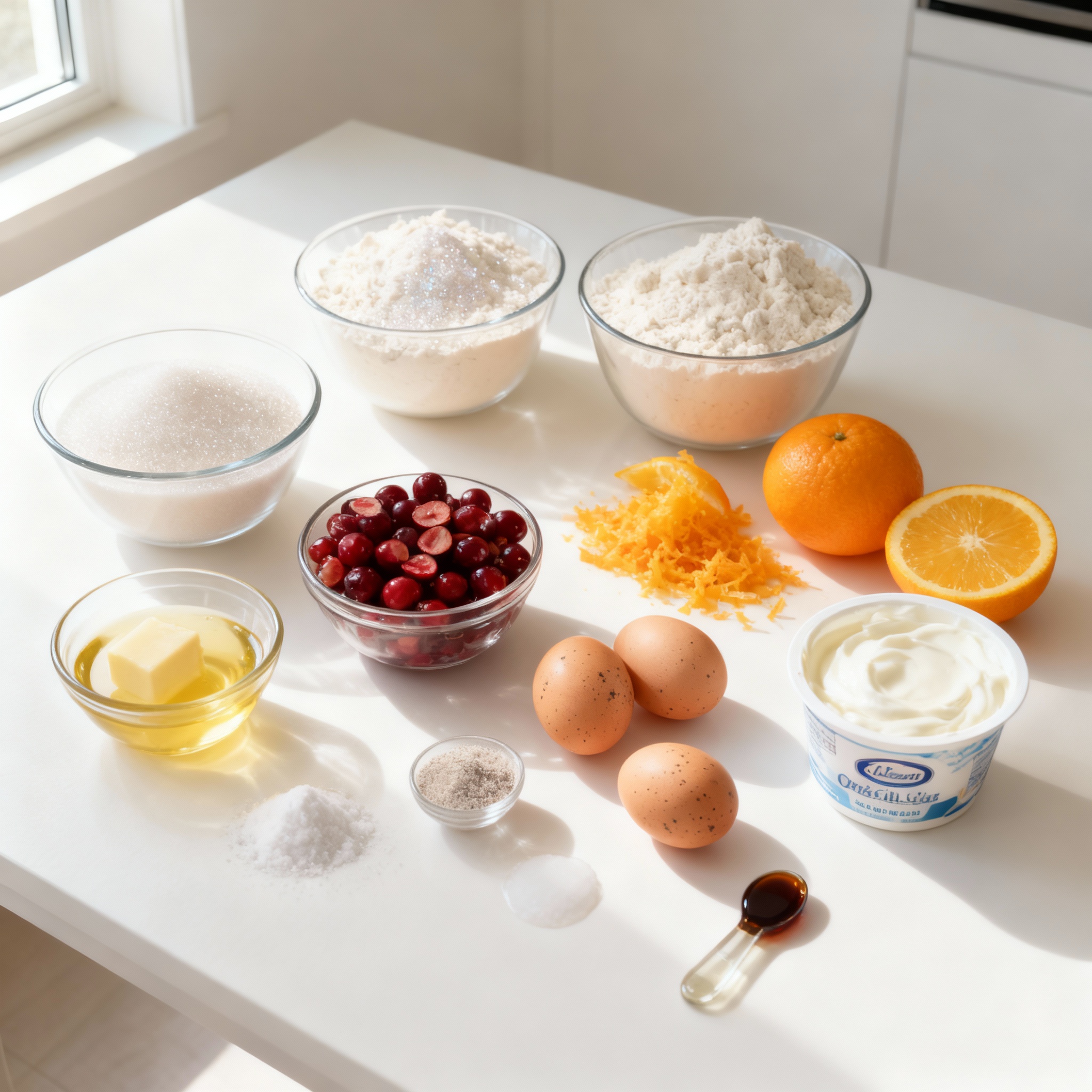 Each ingredient plays a key role. The flour gives structure, while the sugar adds sweetness. Baking powder and baking soda help the loaf rise. Salt balances the flavors, and cranberries add a tart punch. The orange zest and juice bring bright, fresh flavor. Butter adds richness, and eggs bind everything together. Finally, Greek yogurt or sour cream adds moisture and tang.