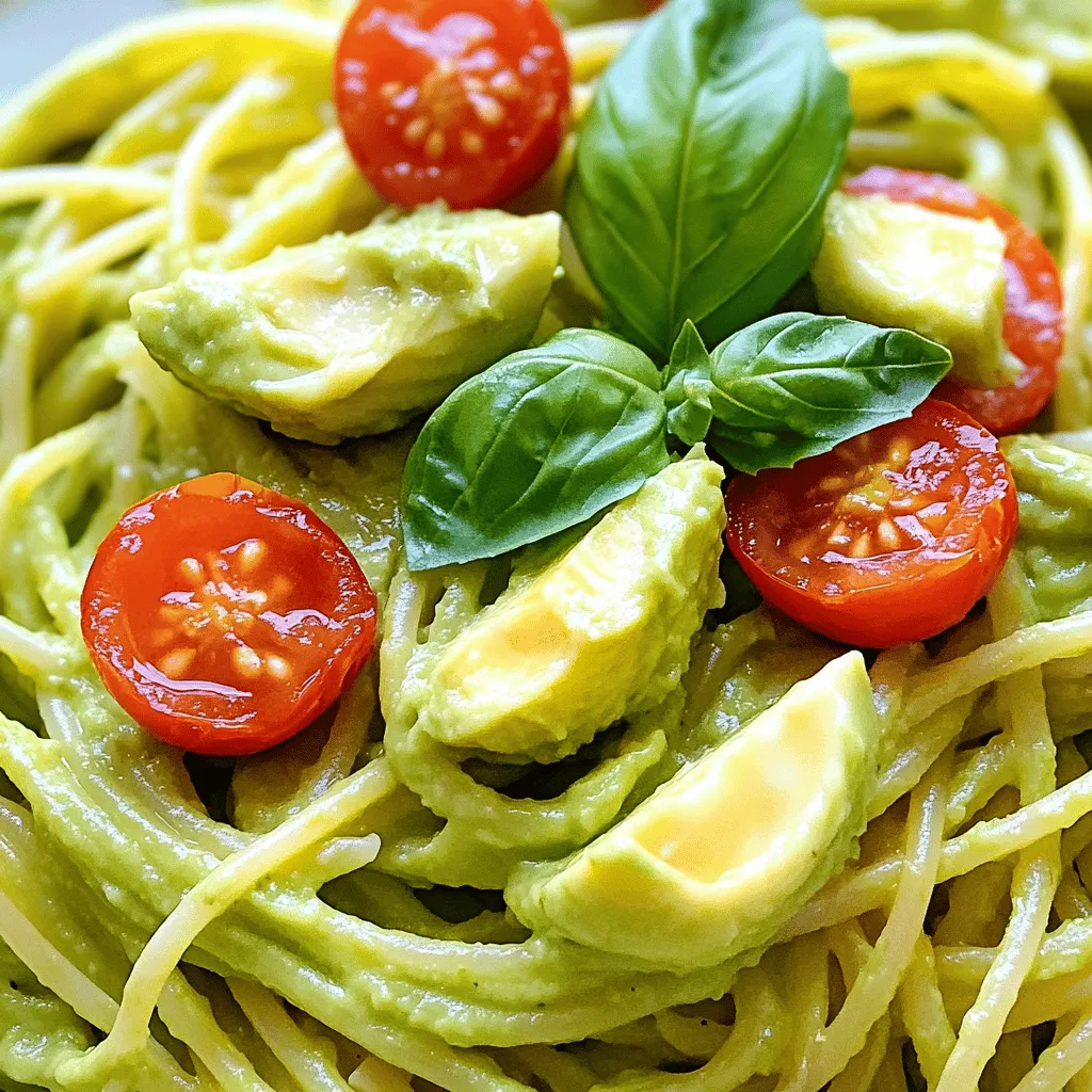 . - Step 1: Boil water and salt Fill a large pot with water. Add a good amount of salt. Bring it to a boil. - Step 2: Cook spaghetti or linguine to al dente Add 12 oz of spaghetti or linguine. Cook it until it's al dente, about 8 to 10 minutes. Reserve 1 cup of pasta water, then drain the pasta. - Step 3: Blend avocado, garlic, lemon juice, and basil In your food processor, add 2 ripe avocados, 2 cloves of minced garlic, 2 tablespoons of fresh lemon juice, and ¼ cup of fresh basil leaves. Blend until smooth. - Step 4: Add olive oil and Parmesan cheese, blend until smooth Pour in ¼ cup of extra virgin olive oil and ¼ cup of grated Parmesan cheese. Blend again until the sauce is creamy. If needed, add some reserved pasta water to make it smoother. - Step 5: Toss pasta with sauce In a large bowl, mix the pasta with the avocado sauce. Make sure all the pasta is well coated. - Step 6: Adjust seasoning and garnish Taste the dish. Add salt and pepper to your liking. For a bit of heat, sprinkle in ¼ teaspoon of red pepper flakes. Serve the pasta with halved cherry tomatoes and extra basil leaves on top. For the full recipe, check out the details above. Enjoy your creamy avocado pasta! To get the right sauce consistency, blend the avocados until smooth. If it feels thick, add a bit of reserved pasta water. This will help loosen the sauce. For a dairy-free option, replace Parmesan cheese with nutritional yeast. It gives a cheesy flavor without any dairy. You can also add a bit more lemon juice for extra zing. To keep your pasta al dente, cook it just until tender. Taste a piece before draining. It should have a slight bite to it. Always reserve a cup of pasta water before draining. This starchy water helps bind the sauce to the pasta later. You can use it to adjust the sauce's thickness as needed. Pair your creamy avocado pasta with grilled chicken or shrimp for added protein. You can also toss in seasonal veggies like spinach or cherry tomatoes for extra color and nutrition. For a beautiful plate, twirl the pasta with a fork and place it in the center. Garnish with extra basil leaves and halved cherry tomatoes for a fresh look. This makes the dish not only tasty but also visually appealing. {{image_2}} You can easily make creamy avocado pasta your own. Want more protein? Add grilled chicken or shrimp. Both options taste great with the creamy sauce. If you prefer veggies, try mixing in seasonal vegetables. Fresh spinach, zucchini, or cherry tomatoes work well. Boost the flavor of your dish with spices or herbs. A pinch of garlic powder or a sprinkle of paprika can add zest. Fresh herbs like parsley or cilantro can brighten the dish. You can also switch up your cheese. Try feta or goat cheese for a different taste. Feel free to get creative with sauces. A creamy Alfredo or pesto sauce can be a fun twist. You can also mix the avocado sauce with classic marinara for a unique blend. Experiment and find what you love! Check out the Full Recipe for more ideas. To store creamy avocado pasta, place it in an airtight container. This keeps moisture in and prevents the pasta from drying out. You can also cover the container with plastic wrap if you don’t have a lid. Try to eat leftovers within two days for the best taste and texture. When reheating, do so gently on the stove or in the microwave. Add a splash of olive oil or a bit of reserved pasta water. This helps restore the creamy texture. Stir well to mix the sauce back into the pasta. You can also add fresh basil or cherry tomatoes to refresh the dish. Can you freeze creamy avocado pasta? It’s best not to freeze it. The avocado may change texture when thawed. Instead, you can freeze the sauce and pasta separately. For the sauce, place it in a freezer-safe bag or container. For the pasta, let it cool, then store in a separate container. When ready to use, thaw the sauce and reheat the pasta. This way, you keep the best flavors and textures. Creamy avocado pasta can last about 2 to 3 days in the fridge. Store it in an airtight container to keep it fresh. If you notice any browning on the avocado, that's a sign it’s starting to spoil. A strong or sour smell also means you should toss it. Yes, you can make creamy avocado pasta ahead of time! For best results, make the sauce and cook the pasta separately. When you're ready to eat, mix them together. This keeps the pasta from becoming mushy. You can warm it up gently on the stove. Add a splash of water if needed to loosen the sauce. If you want to switch things up, you can use zucchini noodles or gluten-free pasta. Zucchini noodles are light and fresh. They add a nice crunch. Gluten-free pasta works well for those with dietary needs. Both options keep the dish tasty and satisfying. In this blog post, we covered how to make creamy avocado pasta. We discussed the simple ingredients, step-by-step instructions, and helpful tips. You can customize this dish with add-ins or different flavors. Don't forget the storage tips for leftovers. Making this meal is easy and fun. It’s tasty, healthy, and great for any occasion. Try it out, and enjoy your creamy avocado pasta today!](https://mysavedrecipe.com/wp-content/uploads/2025/04/8ca2522b-e89a-4c40-96dd-26e11eee8f74.webp)