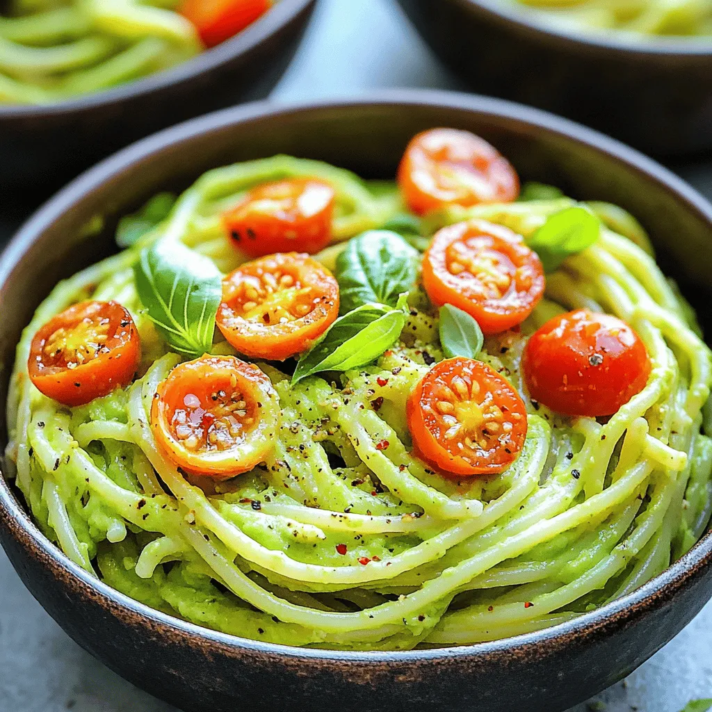 Creamy avocado pasta is simple to make, and you need just a few key ingredients. The main stars are the ripe avocados, which give the dish its creamy texture. I prefer using fresh avocados that are soft but not overripe. This ensures a smooth sauce that brings life to the pasta.