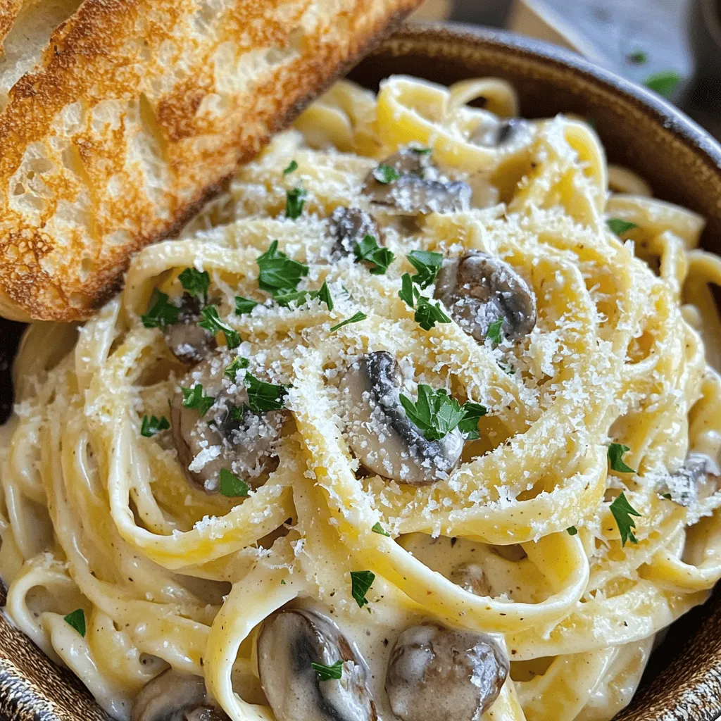 Each of these ingredients plays a key role in building flavor. The fettuccine is the perfect base, offering a chewy texture. Olive oil and butter add richness to the dish. Garlic brings aromatic depth, while mushrooms provide umami. Heavy cream makes the sauce luxuriously creamy, and Parmesan gives a savory punch. Seasonings like thyme and pepper elevate the dish to new heights.
