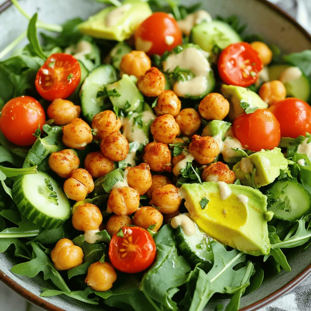 I enjoy serving this salad with extra crispy chickpeas on top. It adds a fun crunch. You can also serve it with a side of lemon wedges. The lemon adds a fresh burst of flavor. For a heartier meal, try adding grilled chicken or shrimp. This makes it filling and satisfying. Pairing it with whole grain bread is also a great option. It gives a nice texture contrast.