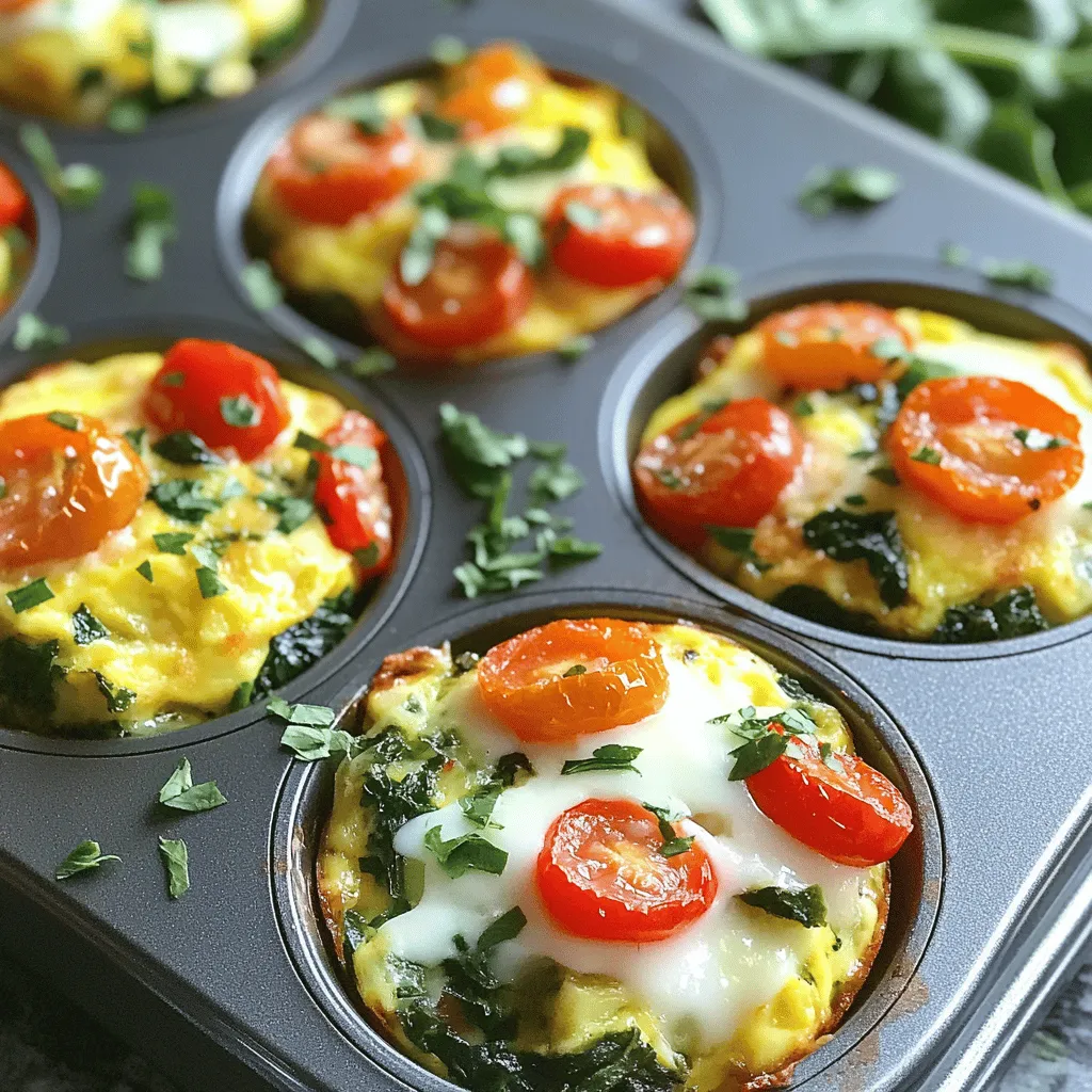 ![To make delicious egg muffins with veggies, you need the following: - 6 large eggs - 1 cup spinach, chopped - ½ cup bell peppers (red, yellow, or green), diced - ½ cup cherry tomatoes, halved - ¼ cup red onion, finely chopped - ½ cup shredded cheese (cheddar or mozzarella) - ¼ teaspoon garlic powder - ¼ teaspoon black pepper - Salt to taste This mix gives a great flavor and texture. Each ingredient plays a role. The eggs bind everything together, while the veggies add color and nutrients. You can try adding these for extra flavor: - Fresh herbs like parsley or basil for garnish - Alternative cheeses such as feta or goat cheese These options let you customize your muffins. Each ingredient can make your meal unique and tasty. Don't be afraid to experiment! First, you need to preheat your oven to 375°F (190°C). This step helps the muffins cook evenly. While the oven heats, grease your muffin tin with a bit of oil or cooking spray. This keeps the muffins from sticking. A well-greased tin is key for easy removal. Next, grab a large mixing bowl. Crack the eggs into the bowl and whisk them well. You want them to be nice and fluffy. After that, add the chopped spinach, diced bell peppers, halved cherry tomatoes, and finely chopped red onion to the eggs. Stir everything together gently. Now, sprinkle in the shredded cheese, garlic powder, black pepper, and salt. Mix until all the ingredients combine nicely. Make sure the veggies and cheese are spread evenly throughout the egg mixture. Now it’s time to fill the muffin tin. Pour the egg and veggie mix into each cup, filling them about ¾ full. This gives them room to rise. Once filled, place the muffin tin in the preheated oven. Bake for 18-20 minutes. The muffins are done when the eggs are set and the tops look lightly golden. After baking, remove the muffins from the oven and let them cool for a few minutes. Then, gently lift them from the tin. If you want, add some fresh herbs on top for a nice touch. Enjoy your veggie-packed egg muffins! For the full recipe, see the earlier section. To make your egg muffins perfect, start with the eggs. Whisk them well until they are frothy. This helps to add air, making the muffins light and fluffy. Use a fork or a whisk for best results. When you pour the mixture into the muffin tin, do not overfill. Fill each cup about three-quarters full. This allows space for the muffins to rise without spilling over. One common mistake is not greasing the tin properly. Use oil or cooking spray to coat the tin. This step prevents sticking and makes cleanup easier. Another mistake is undercooking or overcooking the muffins. Keep an eye on the bake time. Check them at 18 minutes. The muffins should be set and slightly golden on top. To boost flavor, add herbs and spices. Fresh parsley, basil, or oregano work well. You can use about a tablespoon of chopped herbs for a great taste. If you want to change the cheese, try feta or goat cheese. They add a nice tang and work well with veggies. These options can give your muffins a tasty twist. For the full recipe, visit the [Full Recipe] section. {{image_2}} You can mix up the vegetables in your egg muffins for fun flavors. Zucchini adds moisture and a mild taste. Mushrooms bring a nice umami flavor and a chewy texture. Broccoli adds a bit of crunch and a pop of green. The great thing about these muffins is you can use what you have. Seasonal vegetables are also a good choice. In the summer, use fresh corn or diced tomatoes. In fall, consider sweet potatoes or squash for added sweetness. This way, you can enjoy different tastes each season. Adding protein to your egg muffins makes them heartier. You can use bacon, ham, or sausage for a savory touch. Cook these proteins first to get the best flavor. Chop them into small pieces before adding them to the mixture. If you're looking for plant-based options, tofu works great too. Crumble firm tofu and mix it in. You can also use chickpeas or black beans for added protein. These options keep your muffins tasty and filling while catering to various diets. For the full recipe, check out the details in the earlier section. Refrigeration Tips After you bake the egg muffins, let them cool completely. Then, place them in an airtight container. Store them in the fridge for up to five days. Always check for any signs of spoilage before eating. Freezing Instructions For longer storage, freeze the muffins. Wrap each muffin tightly in plastic wrap. Place them in a freezer bag or container. They can last for about three months in the freezer. When ready to eat, just thaw them in the fridge overnight. Best Methods for Reheating You can reheat egg muffins in the microwave or oven. For the microwave, heat on medium power for about 30-60 seconds. In the oven, preheat to 350°F (175°C) and bake for around 10 minutes. Maintaining Texture and Flavor To keep the muffins moist, cover them with a damp paper towel when microwaving. This helps to prevent them from drying out. If using the oven, you can add a splash of water to the baking dish to create steam. This keeps them soft and tasty. Yes, you can make these muffins ahead of time. - Meal Prep Suggestions: Prepare a batch on the weekend. Store them in the fridge for easy breakfasts. Allow the muffins to cool before placing them in an airtight container. They stay fresh for about five days. You can also freeze them for longer storage. Just reheat in the microwave or oven when ready to eat. You can easily modify the recipe to fit many dietary needs. - Gluten-Free and Dairy-Free Options: For gluten-free muffins, use gluten-free flour. Most veggies are safe for gluten-free diets. For a dairy-free option, skip the cheese or use a dairy-free cheese substitute. You can also add nutritional yeast for a cheesy flavor without dairy. These egg muffins last about five days in the fridge. - Storage Duration and Safety Tips: Store them in a sealed container to keep them fresh. If you notice any changes in sme