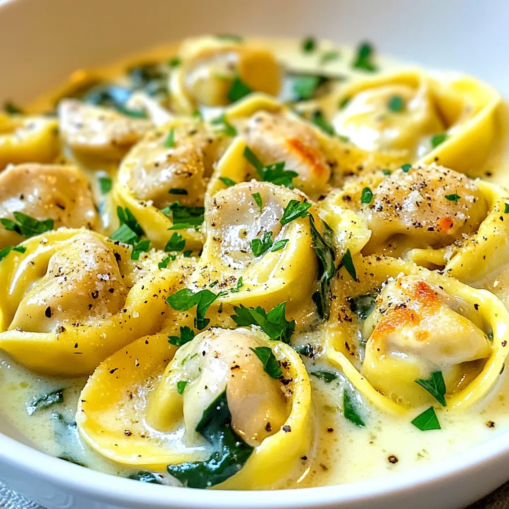 - Add the cooked tortellini, sautéed chicken, and fresh spinach to the skillet. Toss gently to combine and heat through, about 2-3 minutes. Adjust seasoning with salt and pepper as needed.