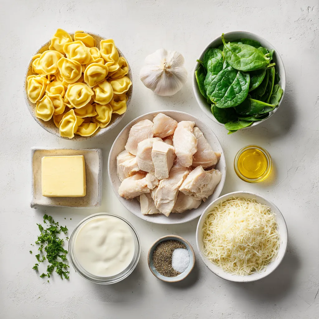 You need to gather the main ingredients first. Cheese tortellini is the star of this dish. You can use fresh or frozen. The chicken adds protein and flavor. I like using boneless and skinless breasts for ease. Butter brings a rich taste to the sauce. Garlic adds a strong aroma that makes your kitchen smell amazing. Heavy cream gives the sauce a nice, creamy texture. Parmesan cheese adds a salty kick that pairs perfectly with garlic. Italian seasoning gives it a classic Italian touch. Fresh spinach adds color and nutrition to the dish. Finally, parsley is a great garnish that freshens up the plate.