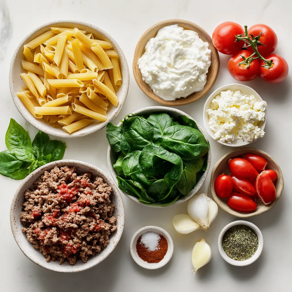 Main Ingredients for High Protein Creamy Beef Pasta