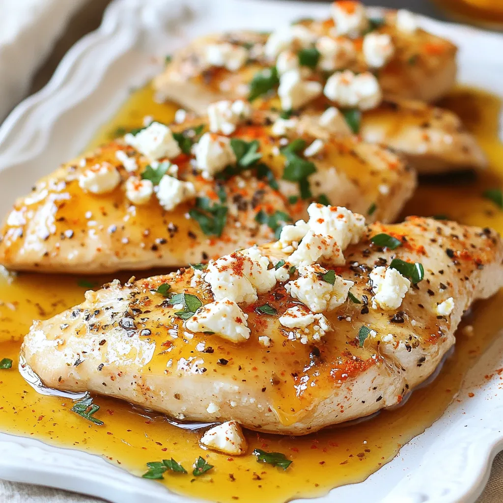 Serve the Hot Honey Feta Chicken on a nice platter. Drizzle some leftover hot honey over the top. A sprinkle of parsley adds color and freshness. Pair it with roasted veggies or a fresh salad. These sides balance the spicy and sweet flavors. You can also serve it with rice or quinoa for a hearty meal. Enjoy your feast!