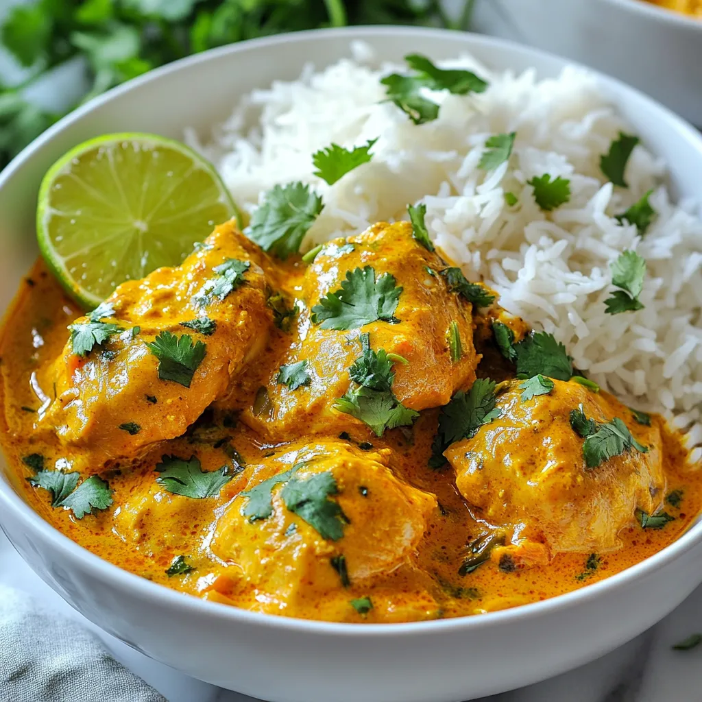 Butter chicken is rich and creamy. To make it, start with your chicken curry base. After adding the coconut milk, stir in 1 cup of heavy cream. This gives the dish a luscious texture. Add 1 tablespoon of butter right before serving for extra flavor. You can also sweeten it with 1 tablespoon of sugar or honey. This balances the spices and adds a nice touch.