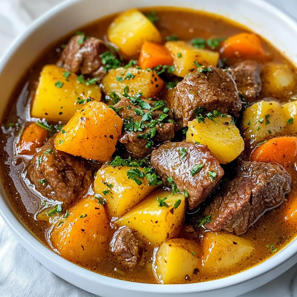 - Taste and adjust seasoning if necessary. Ladle the stew into bowls and garnish with fresh chopped parsley.