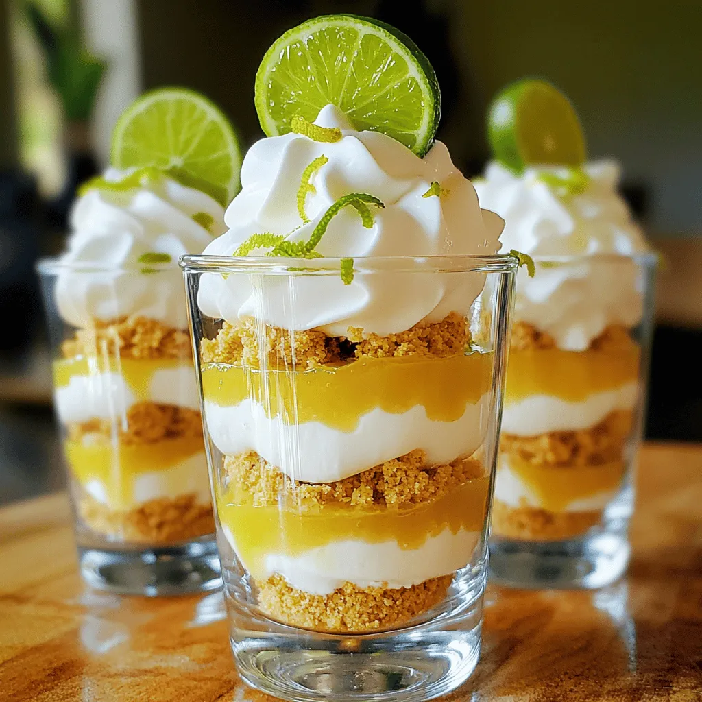For a great presentation, use clear glasses. This shows off the pretty layers of crust and filling. You can add a sprinkle of lime zest on top for color. A slice of lime on the edge adds a nice touch too. You may even serve with colorful straws for fun. These parfaits are perfect for parties or as a sweet treat after dinner. Enjoy!