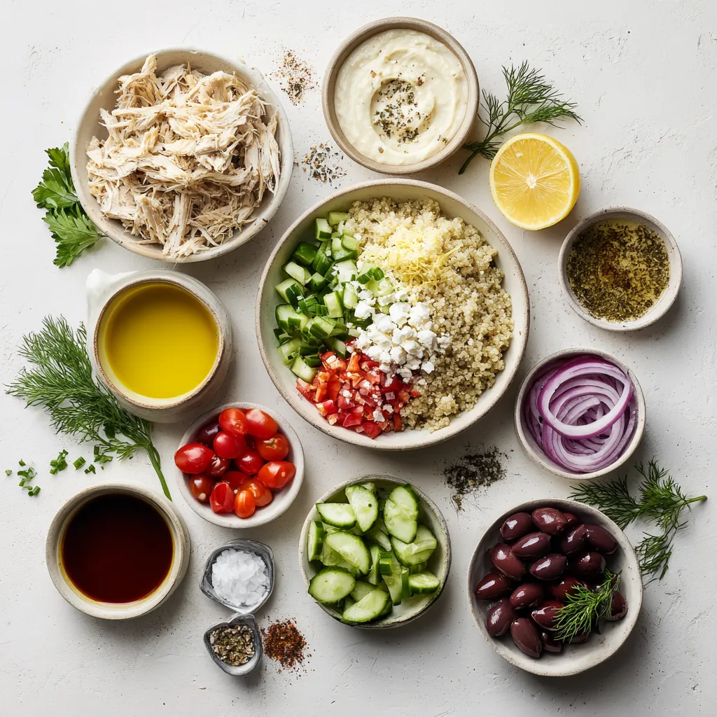 Each ingredient brings something special. The shredded chicken adds protein and flavor. I like using chicken that is seasoned with lemon, garlic, and herbs. It really boosts the dish! Quinoa or brown rice serves as a hearty base. They both provide fiber and help fill you up. Fresh cucumbers and cherry tomatoes give a crisp texture and bright taste.