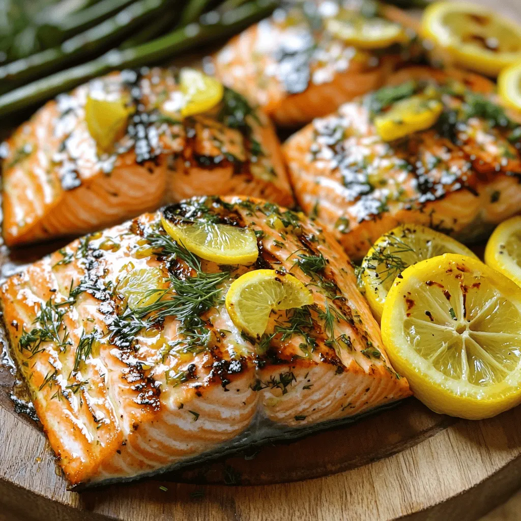 For a lovely presentation, serve the grilled salmon on a platter. Place the grilled lemon slices on top. A sprinkle of fresh herbs adds a pop of color.