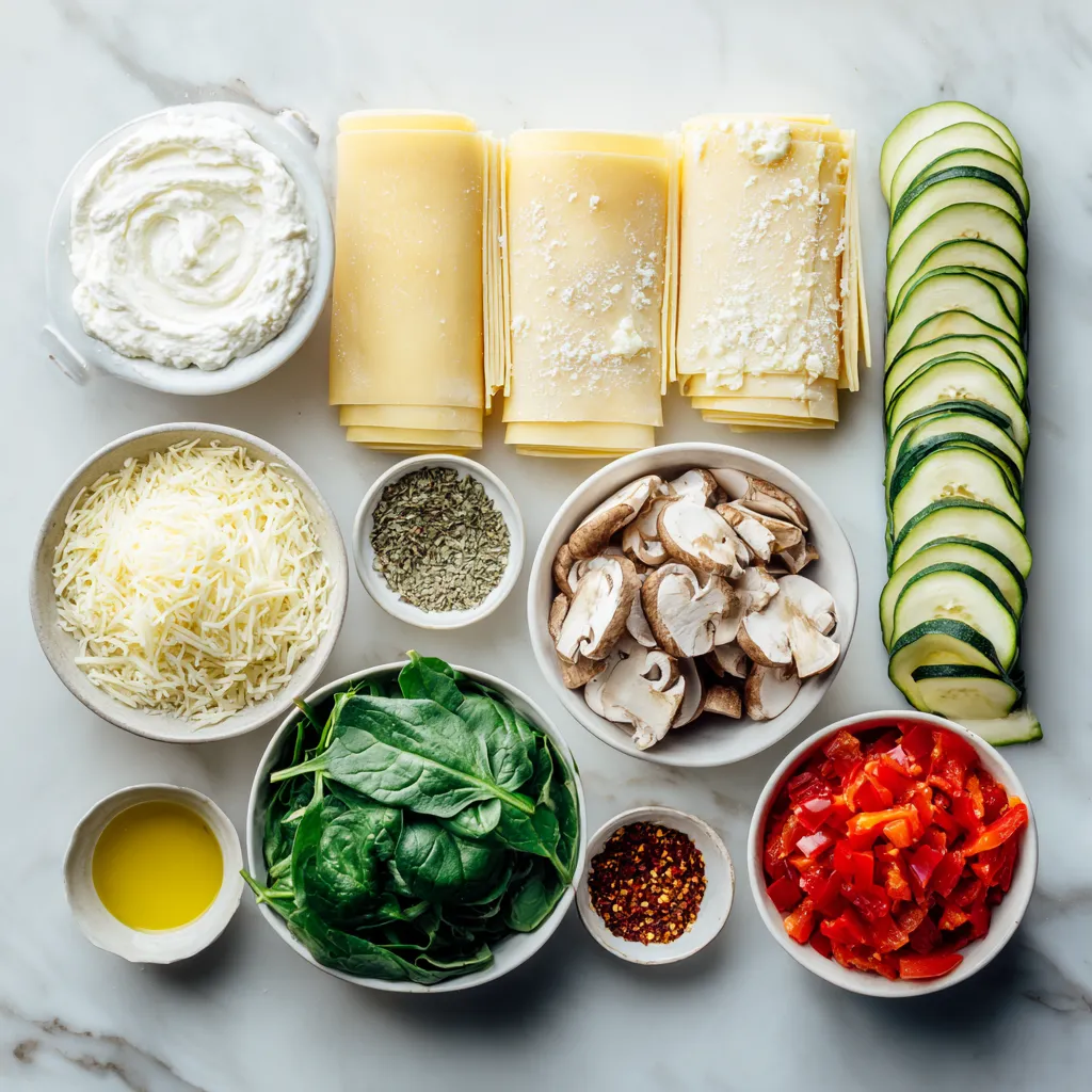 To make Loaded Veggie White Lasagna, gather these key ingredients: