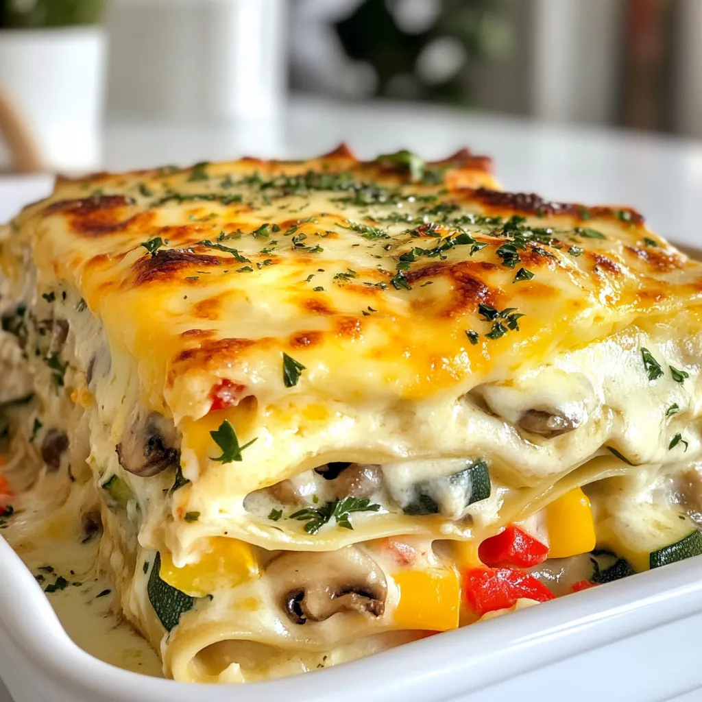 Flavors in Loaded Veggie White Lasagna come from fresh and dried herbs. Oregano and basil add an earthy taste that complements the vegetables. Garlic boosts the overall flavor, making every bite savory. Red pepper flakes provide a hint of heat, but you can skip them if you prefer. The combination of these spices creates a delicious depth that truly shines through.