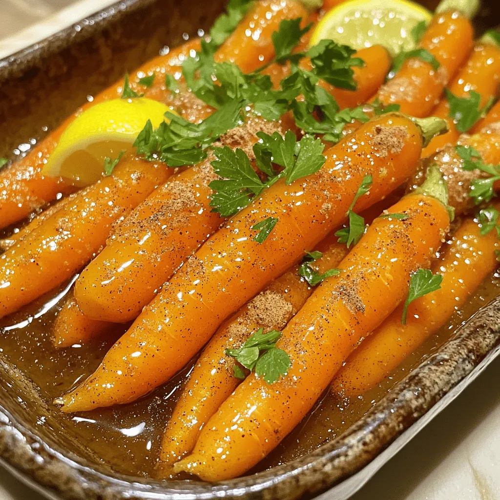 ![- 1 pound baby carrots - 2 tablespoons unsalted butter - ¼ cup pure maple syrup - 1 teaspoon ground cinnamon - ½ teaspoon nutmeg - ¼ teaspoon salt - 1 tablespoon fresh lemon juice - 2 tablespoons chopped fresh parsley (for garnish) - Skillet - Measuring cups and spoons - Vegetable peeler (optional) - Cooking spoon or spatula Gathering the right ingredients is key to making maple glazed carrots. I choose baby carrots because they are sweet and tender. You can use larger carrots, but cut them into even sticks. The unsalted butter adds rich flavor. Pure maple syrup is a must for that sweet glaze. Ground cinnamon and nutmeg bring warmth. A little salt enhances all the flavors. Fresh lemon juice gives a bright touch at the end. Finally, fresh parsley adds a nice pop of color when you serve the dish. For tools, a skillet is essential for cooking. Measuring cups and spoons help you get the right amounts. If you want, a vegetable peeler makes prep easier. A cooking spoon or spatula is great for stirring the carrots. With these ingredients and tools ready, you are set to create a delicious side dish. Check out the [Full Recipe] for more details on how to prepare this sweet and simple dish. Start by washing the baby carrots under cold water. You can peel them if you want, but it's not necessary. If you have larger carrots, cut them into sticks. Make sure they are all about the same size. This helps them cook evenly. Next, heat a large skillet over medium heat. Add the butter and let it melt. Once the butter is melted, toss in the carrots. Stir them well to coat with the butter. Now, pour the maple syrup over the carrots. Sprinkle in the ground cinnamon, nutmeg, and salt. Stir everything together until it is mixed well. Increase the heat a bit and let the mixture come to a simmer. Cover the skillet and let the carrots cook for about ten minutes. Stir them occasionally. You want them to be fork-tender. Once the carrots are tender, uncover the skillet. Let the glaze reduce for about five minutes. Stir occasionally until the sauce thickens. After that, remove the skillet from the heat. Stir in the fresh lemon juice to add brightness. Transfer the glazed carrots to a serving dish. Finally, garnish with freshly chopped parsley for a pop of color. Now you have a lovely side dish! For the complete recipe, check out the Full Recipe. To make your maple glazed carrots shine, start with high-quality maple syrup. Look for pure syrup, not flavored or imitation versions. Pure maple syrup has a rich taste that enhances the dish. Fresh spices also boost flavor. Use ground cinnamon and nutmeg, but consider grating fresh nutmeg for a brighter taste. Fresh herbs like thyme or rosemary can add depth too. To achieve fork-tender carrots, choose baby carrots for quick cooking. If you use larger ones, cut them into even sticks. This helps them cook evenly. Start with medium heat when melting butter, then add the carrots. Keep the glaze on low to avoid burning. Stir often to coat the carrots well. As they cook, the natural sugars caramelize, enhancing sweetness. Maple glazed carrots pair well with many proteins. Try them alongside roasted chicken or grilled salmon for a balanced meal. They also work great with grains like rice or quinoa. For a stunning presentation, arrange the glazed carrots on a platter. Sprinkle fresh parsley on top before serving. This adds a lovely touch of color and freshness. For the full recipe, check the complete guide above. {{image_2}} You can change the flavor of maple glazed carrots by using different sweeteners. For a change, try honey instead of maple syrup. Honey gives a mild sweetness that works well. You can also experiment with herbs for garnish. Fresh thyme or dill can add a new twist to your dish. These herbs bring a fresh taste that balances the sweet glaze. Adding more veggies can make this dish even better. You might try parsnips or sweet potatoes. These root vegetables add depth and a new texture. You can also blend flavors with onions or shallots. Cooking them with the carrots adds a sweet, savory note. This creates a more complex and delicious side dish. If you want to make this dish vegan, simply swap the butter for a plant-based option. Coconut oil or olive oil works great. This keeps the flavor rich while meeting dietary needs. The dish can also be made gluten-free. All the ingredients in this recipe are gluten-free, so you can enjoy them without worry. For the full recipe, check out the detailed steps and ingredients listed above. To keep your maple glazed carrots fresh, store them in an airtight container. Refrigerate them within two hours of cooking. This helps maintain their sweet flavor and soft texture. If you want to freeze the glazed carrots, wait until they cool. Then, place them in a freezer-safe bag. Squeeze out as much air as you can before sealing. This prevents freezer burn and keeps them tasty. When you’re ready to enjoy the leftovers, choose a gentle reheating method. The microwave works well but can make them soft. Instead, heat them in a skillet over low heat. Add a splash of water to help steam them. This keeps the carrots moist. To refresh the glaze, drizzle a little maple syrup while reheating. Stir gently to coat the carrots again. You can safely eat the leftovers for about four days when stored correctly. If you notice any off smells or a slimy texture, throw them away. These signs mean the carrots have spoiled. Always trust your senses! Enjoy your delicious, sweet treat while it lasts. For the full recipe, check out the recipe section above. You can replace butter with olive oil or coconut oil. Both options give great flavor. Use the same amount as in the recipe. Olive oil adds a nice richness, while coconut oil brings a hint of sweetness. This keeps the dish dairy-free and tasty. Yes, frozen carrots work well! However, they need a bit more cooking time. Start by adding them to the skillet and cooking for 5 minutes before adding the maple syrup a
