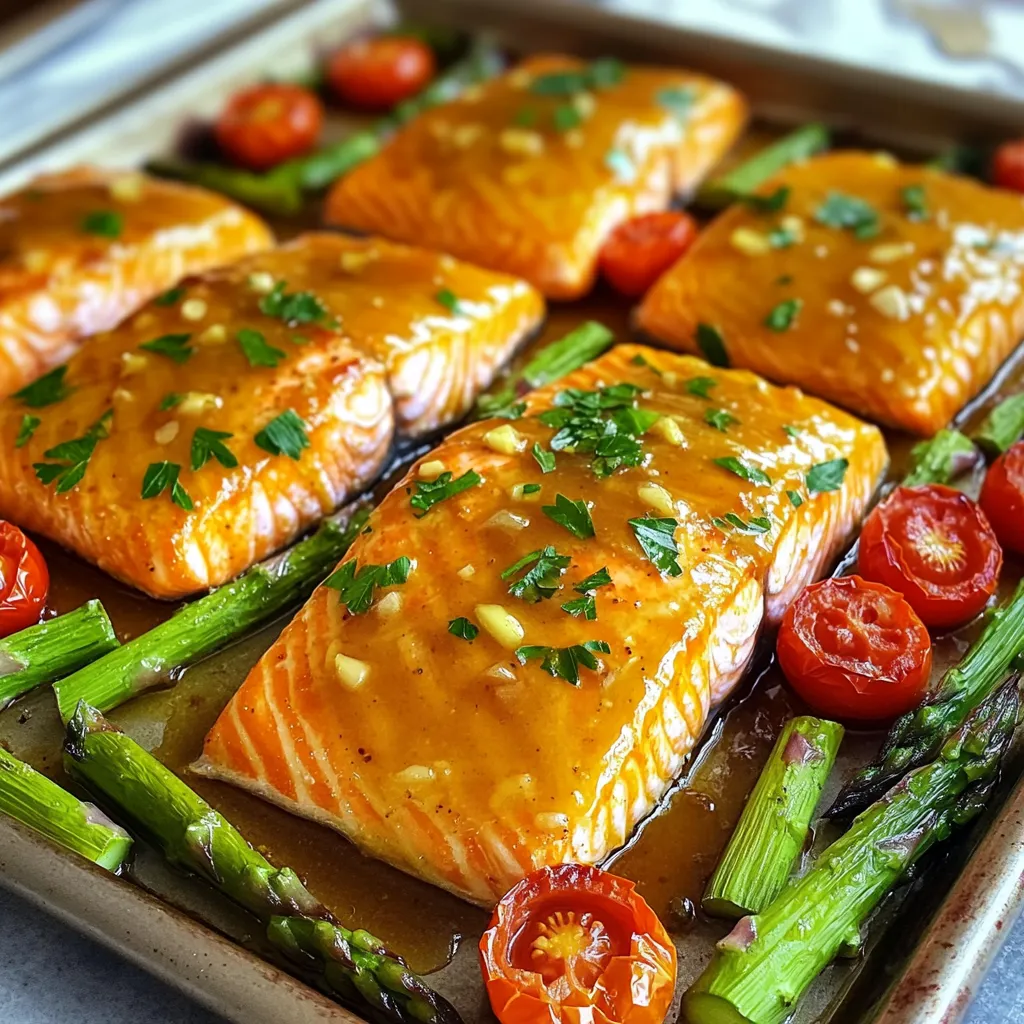 - Beautiful Presentation: The vibrant colors of the asparagus and cherry tomatoes alongside the glazed salmon make for an impressive and appetizing meal.
