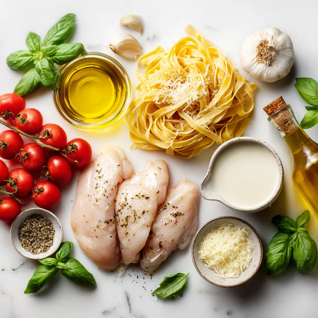 The ingredients for Marry Me Chicken Pasta are simple yet flavorful. You will need chicken breasts and fettuccine pasta as the base. The sauce shines with heavy cream and parmesan, making it rich and creamy. Cherry tomatoes add sweetness and brightness to the dish. Fresh garlic gives it a lovely aroma.