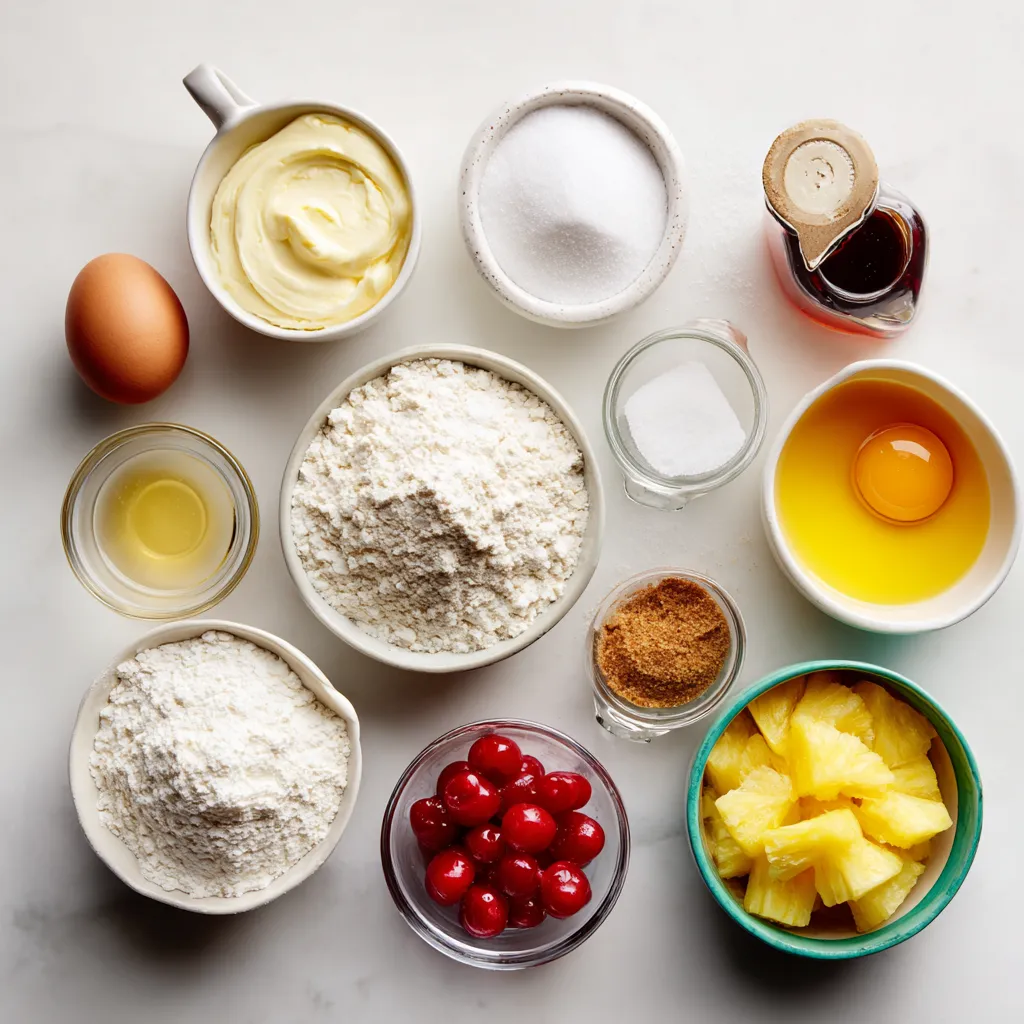 Melted butter makes the cakes rich and moist. Buttermilk adds a slight tang and tenderness. The egg binds everything together, while vanilla extract gives a lovely aroma. Pineapple slices provide the signature upside-down flavor. Brown sugar adds a caramel touch. Maraschino cherries are optional, but they make a fun garnish.