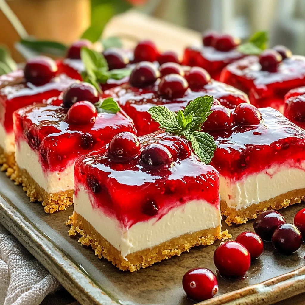 - Suggested garnishes: For a lovely touch, garnish each bar with a fresh cranberry and a mint leaf. This adds a pop of color and freshness. You can also sprinkle some crushed graham crackers on top for added texture.