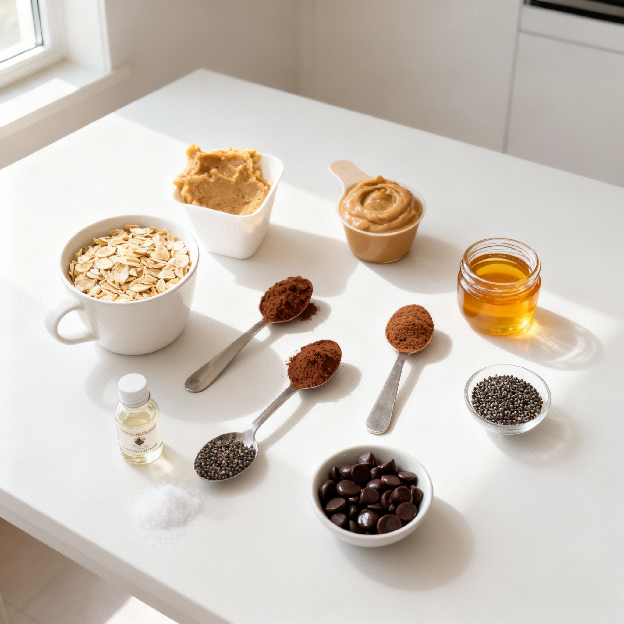 These simple ingredients make for a tasty treat that packs a punch. The rolled oats are the base, giving you fiber and energy. Almond butter adds healthy fats and creaminess. You can choose either honey or maple syrup for sweetness. Cocoa powder brings in rich chocolate flavor, while instant espresso powder adds a nice coffee kick.