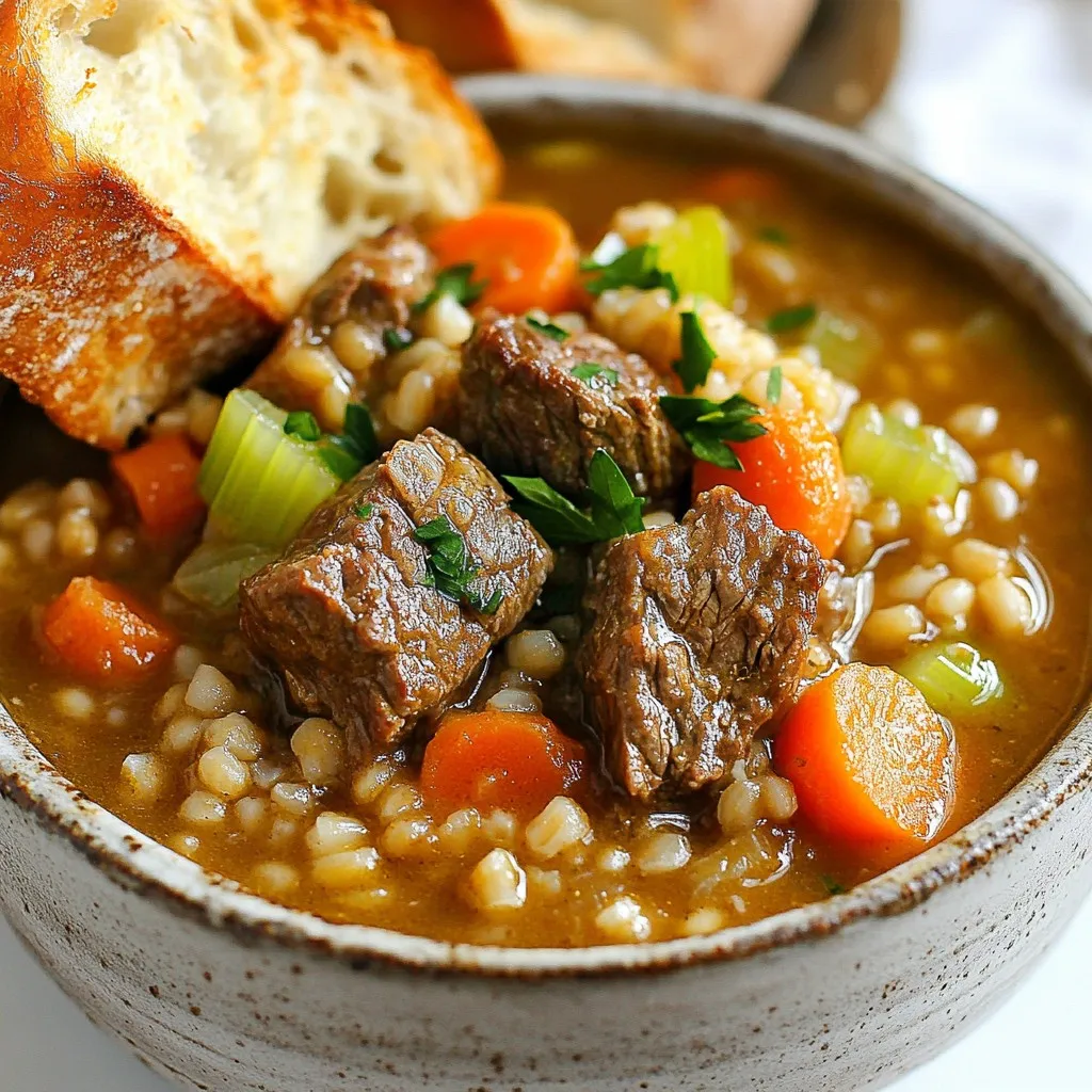 Beef barley stew pairs well with crusty bread. A simple green salad also works nicely. You can even serve it with mashed potatoes for a hearty meal. Don’t forget to sprinkle some fresh parsley on top for a pop of color and flavor!