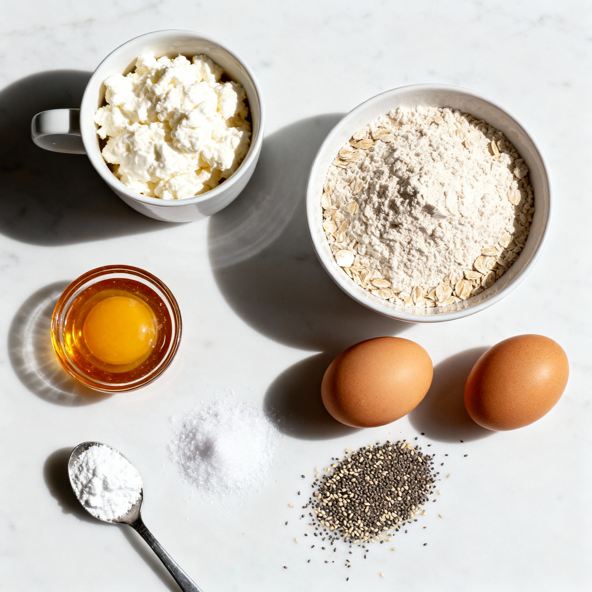 These main ingredients give the bagels their base. Cottage cheese adds protein and moisture. Oat flour helps bind everything together. Eggs provide structure. Honey or maple syrup adds sweetness. Baking powder helps them rise, while salt enhances flavor.