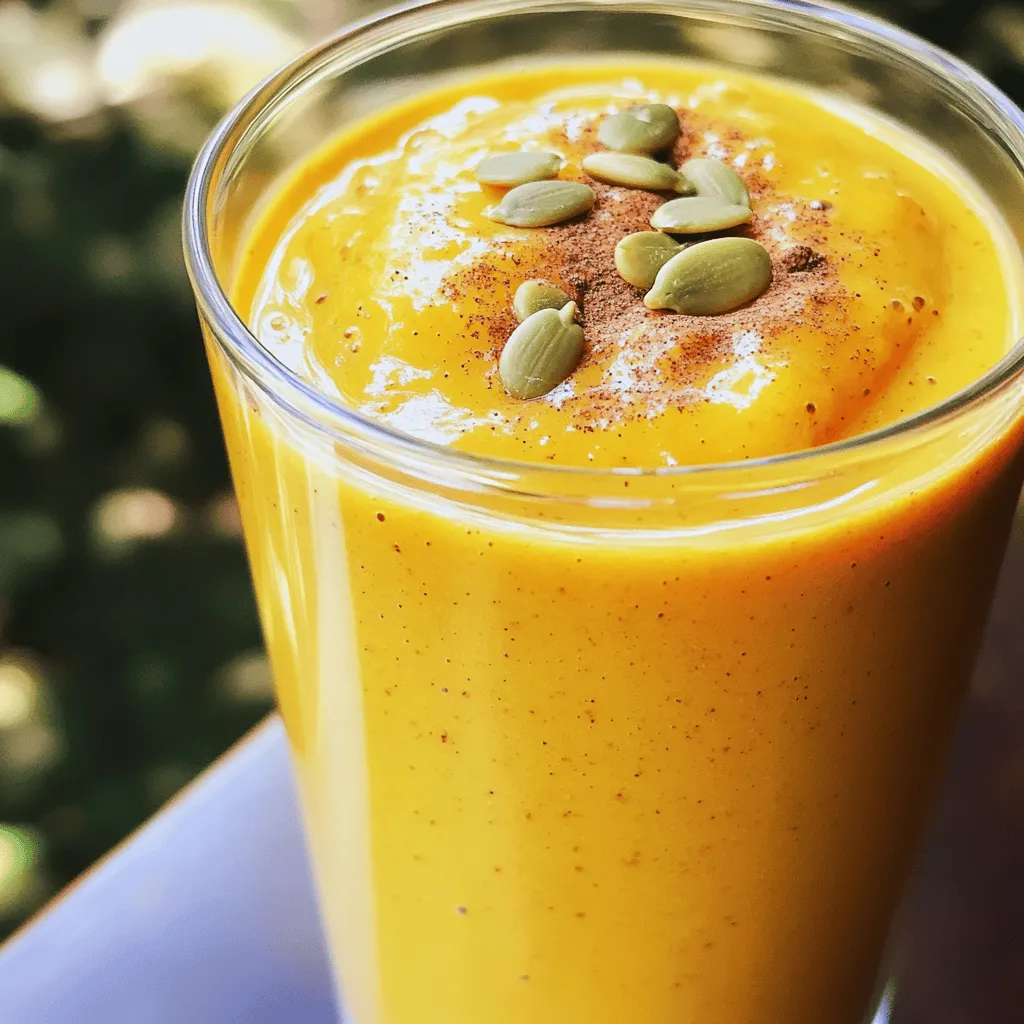 After blending, taste your smoothie. If it needs more sweetness, add a teaspoon of maple syrup. Pour it into your favorite glass or bowl. For a fun touch, garnish with a sprinkle of cinnamon or some pumpkin seeds on top. Enjoy your drink!