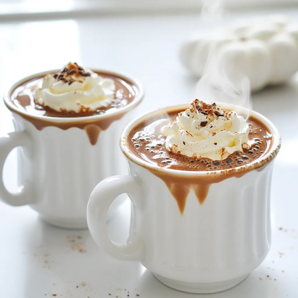 For chocolate lovers, try using dark chocolate instead of cocoa powder. It brings a deeper taste that complements pumpkin well. If you’re feeling adventurous, white chocolate can add a sweet creaminess. Simply melt it into your hot chocolate as you mix. Each option lets you create a new cozy drink!