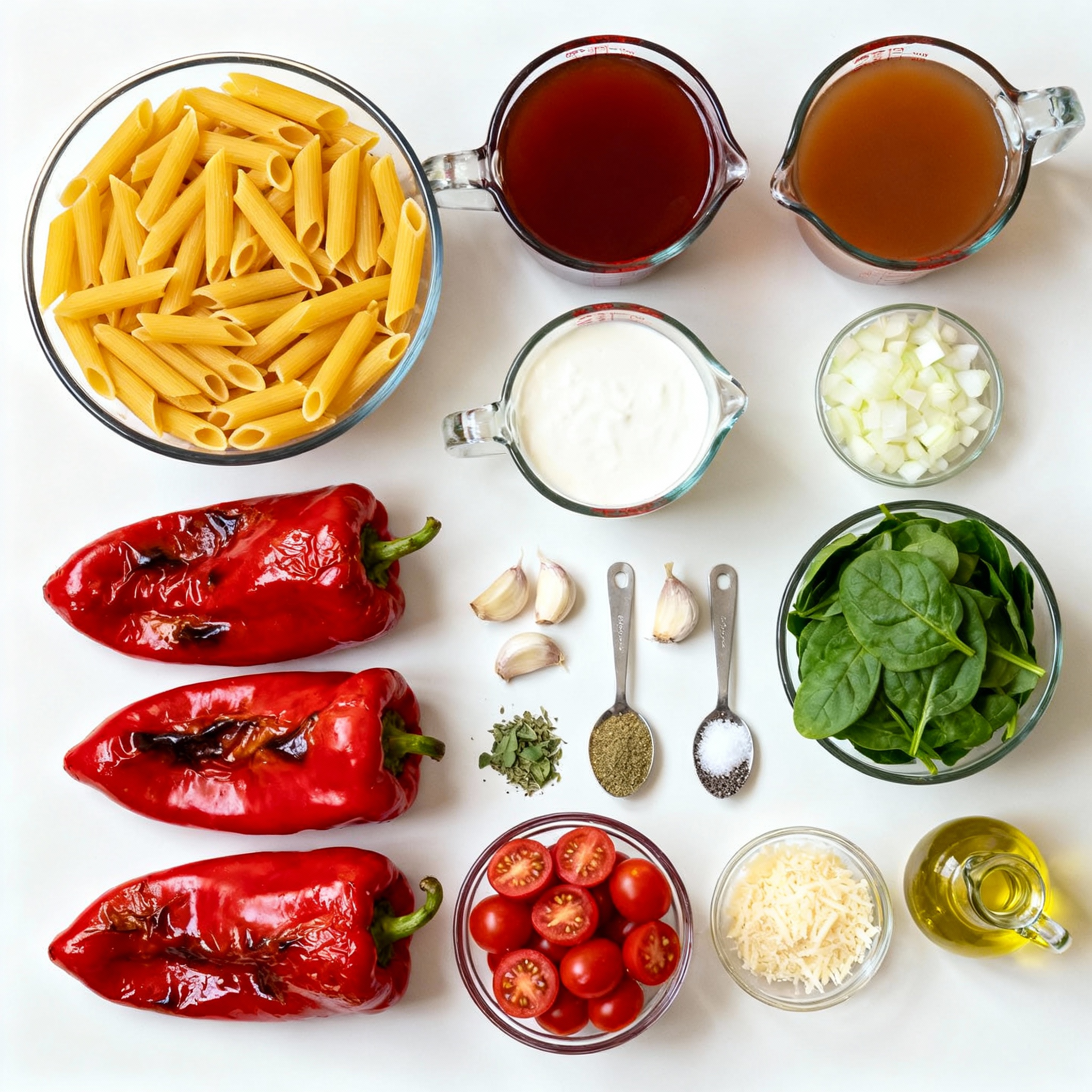 To make Roasted Red Pepper One Pot Pasta, you will need: