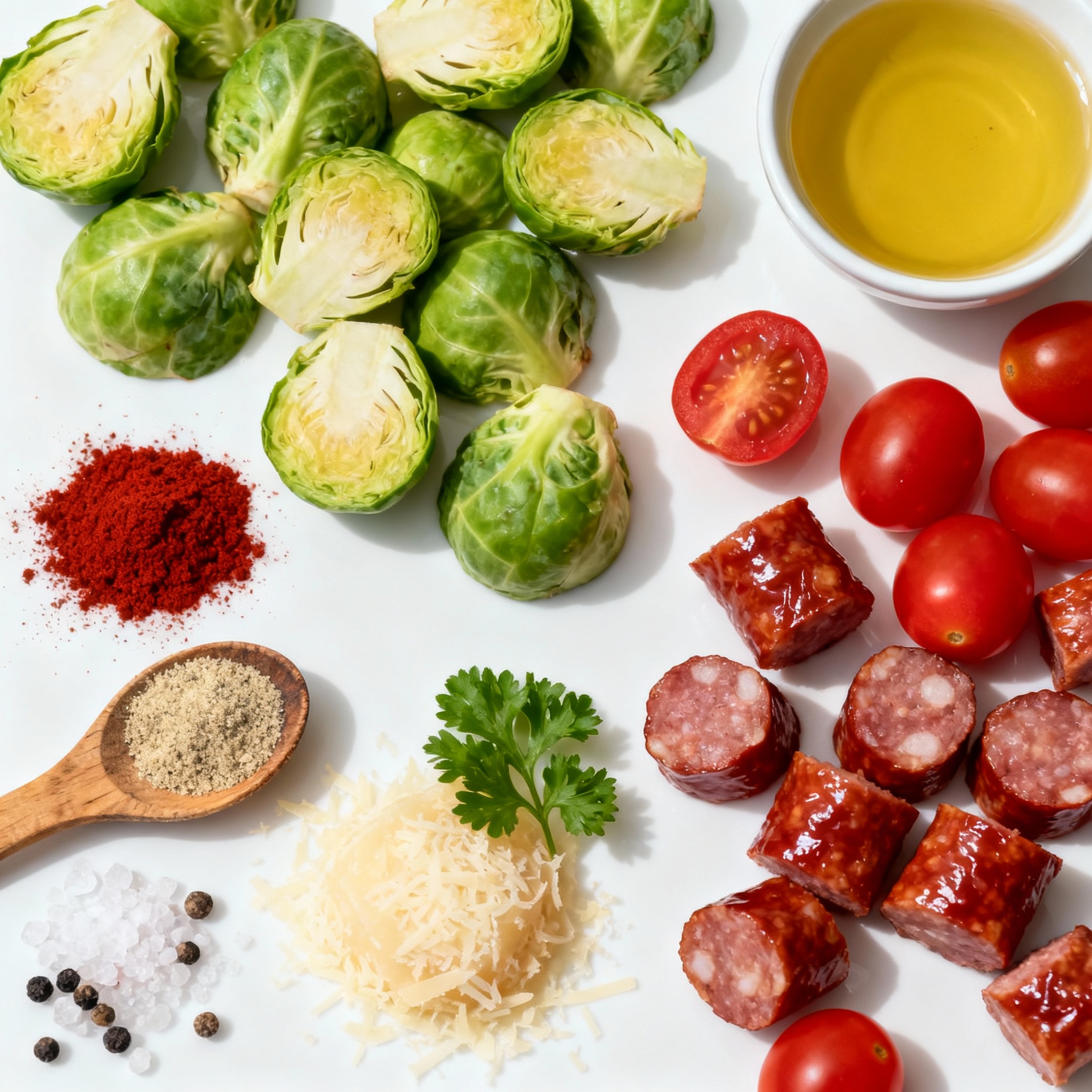 You can change the sausage to fit your taste. Try chicken or turkey sausage. These options are leaner and still pack flavor. They cook well with the Brussels sprouts and tomatoes.