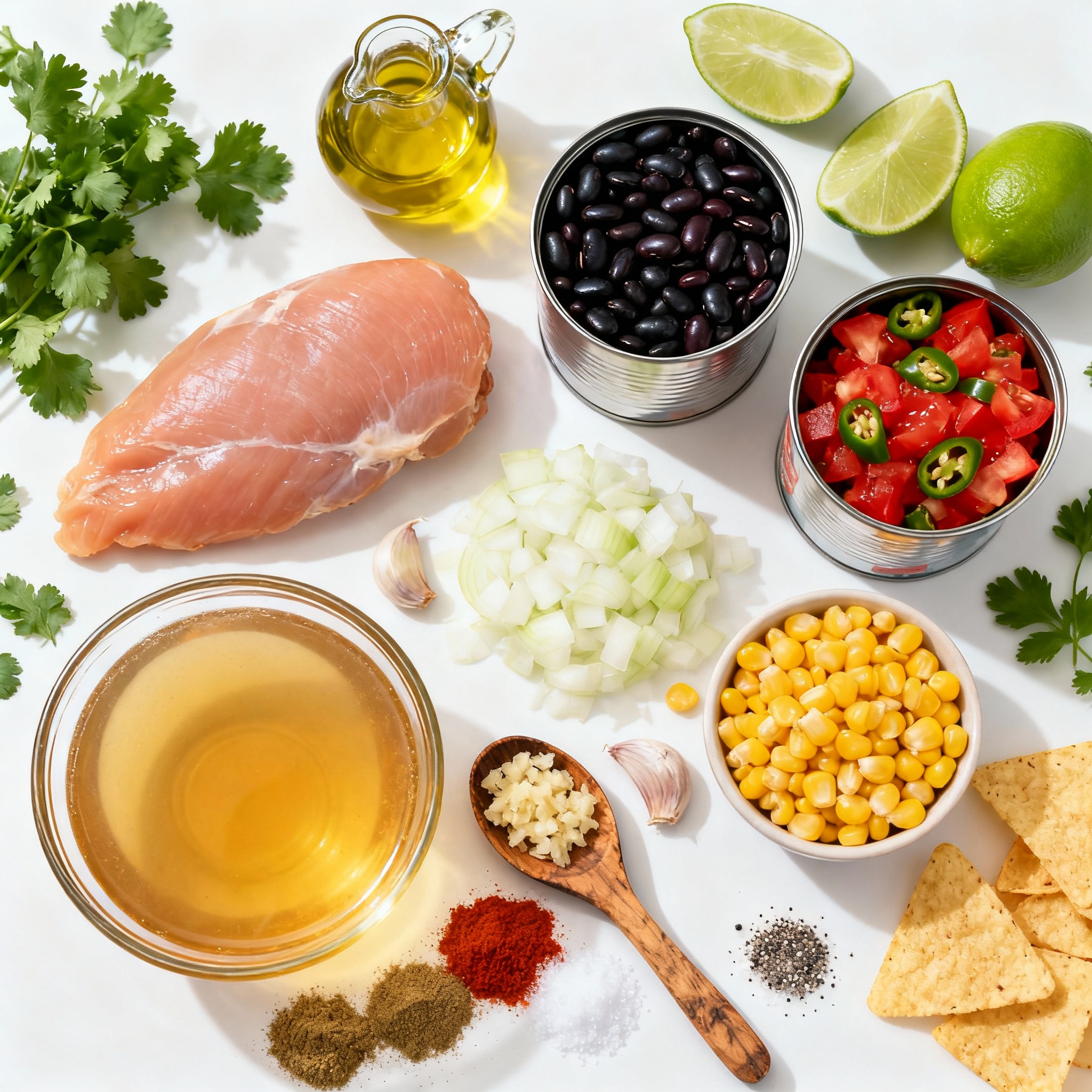 These main ingredients build the heart of the soup. The chicken adds protein and richness. Black beans offer fiber and texture. Diced tomatoes bring acidity and flavor. Onion and garlic add depth. Corn gives a sweet crunch. Chicken broth ties everything together, making a warm base.