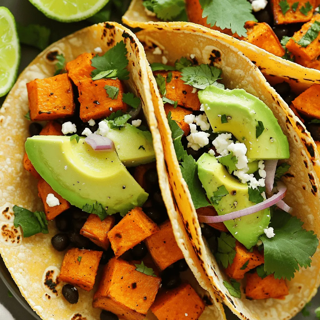 - Assemble your tacos by placing a generous spoonful of sweet potatoes in each tortilla, followed by a scoop of black beans.