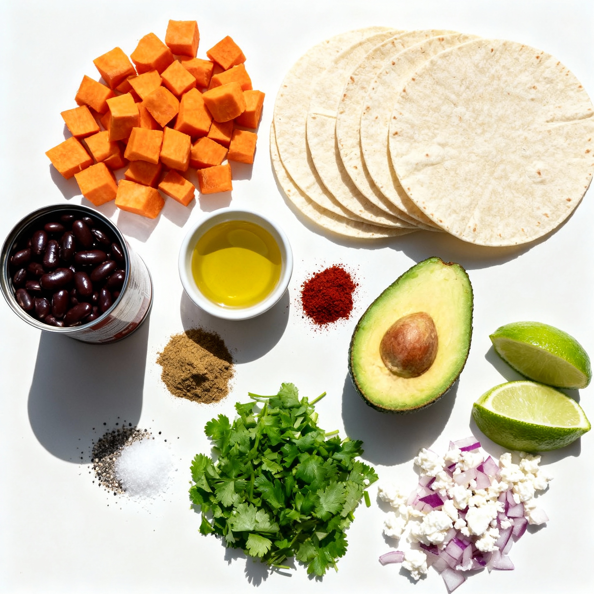 Sweet potatoes are the star here. They add a sweet flavor and creamy texture. Black beans pack protein and fiber. Tortillas hold it all together.