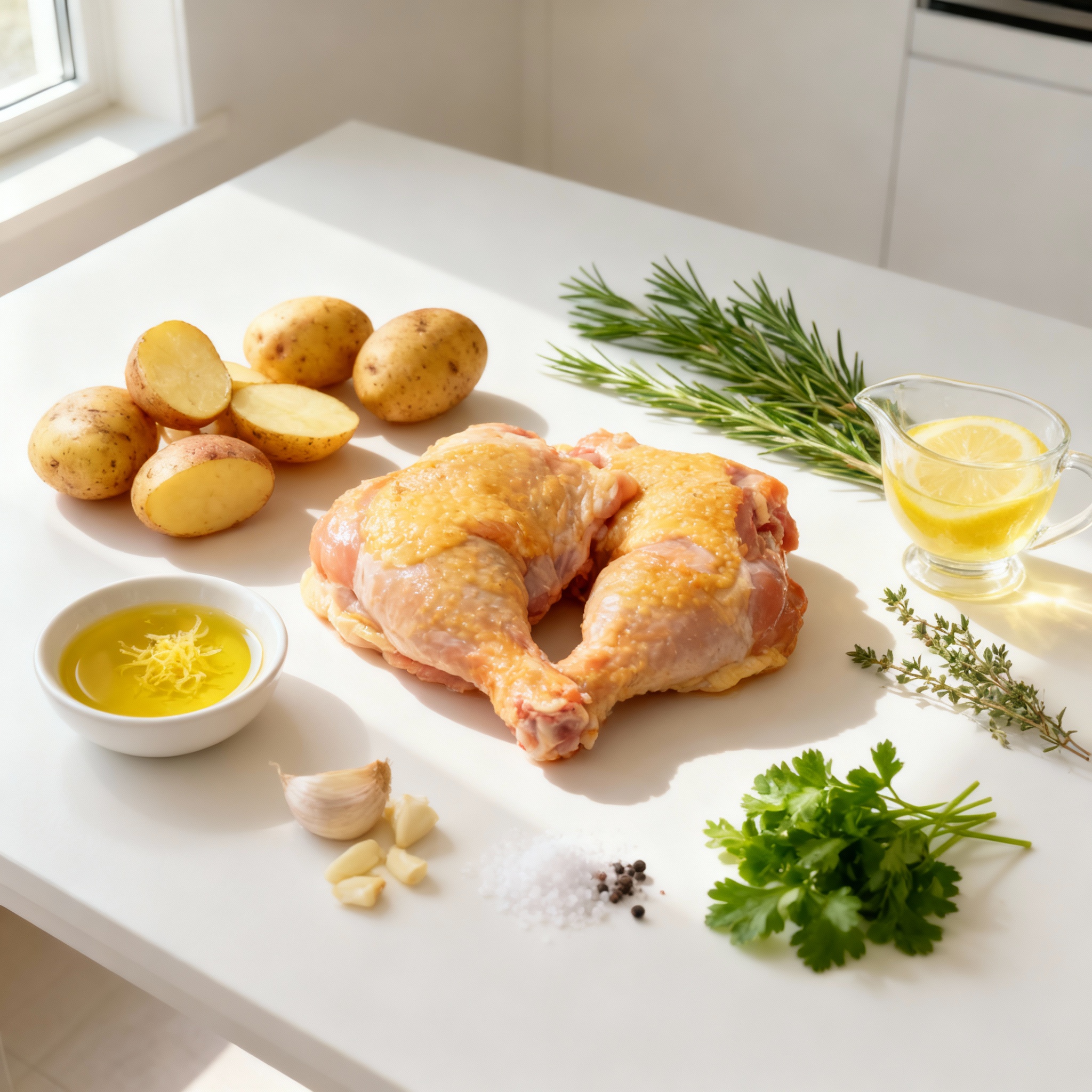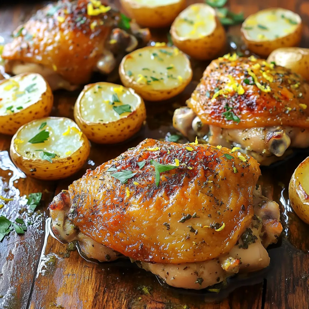 To make this dish, you need fresh, simple ingredients. The chicken thighs give a nice flavor and moisture. The baby potatoes add a hearty touch.