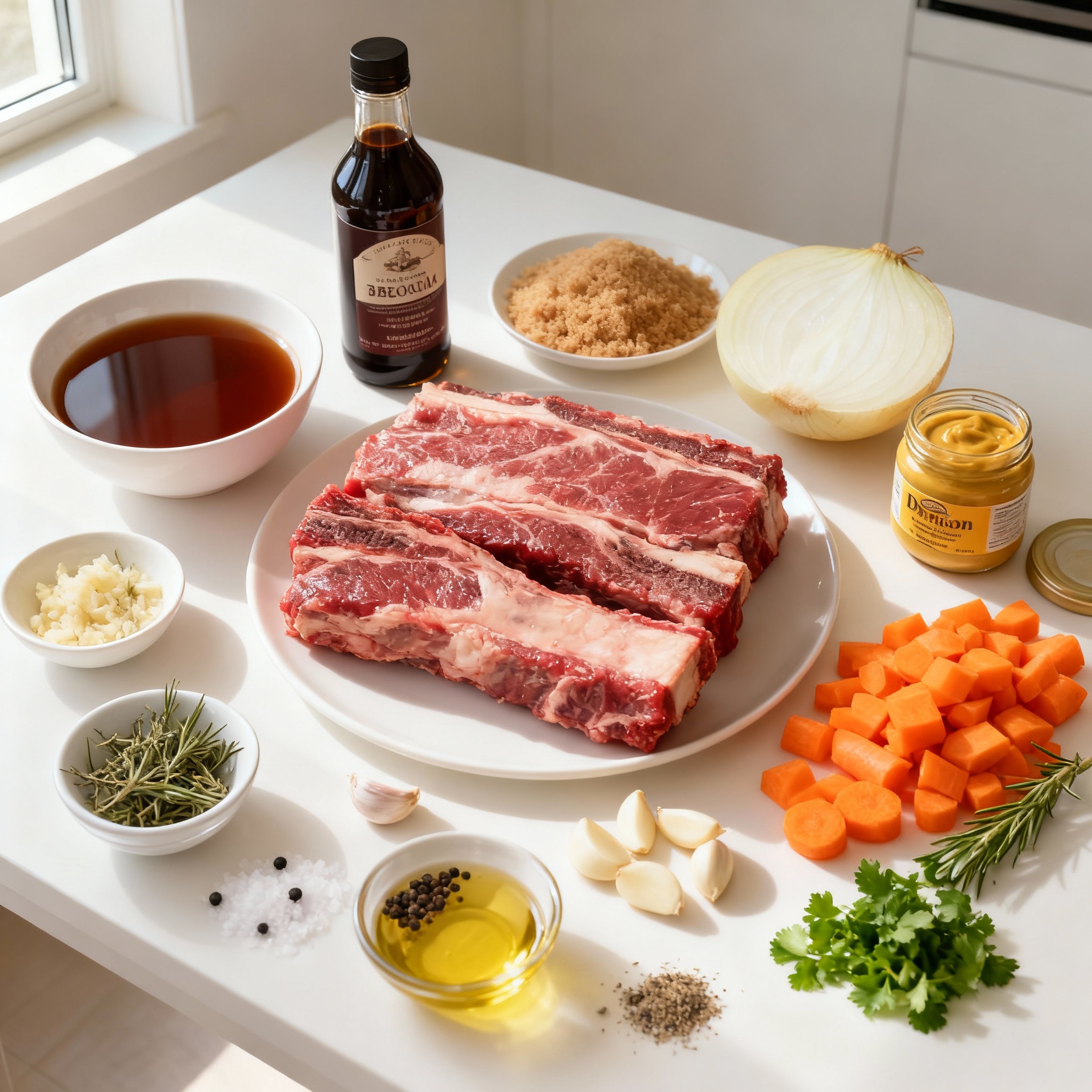 Each ingredient plays a key role in the flavor. The beef short ribs bring richness. Balsamic vinegar adds a sweet and tangy taste. Beef broth gives depth to the sauce. Brown sugar balances the acidity of the vinegar. Dijon mustard adds a subtle kick. Garlic, onion, and carrots create a savory base. Thyme and rosemary add herbal notes that enhance the dish. Don't forget salt and pepper, as they bring all the flavors together.