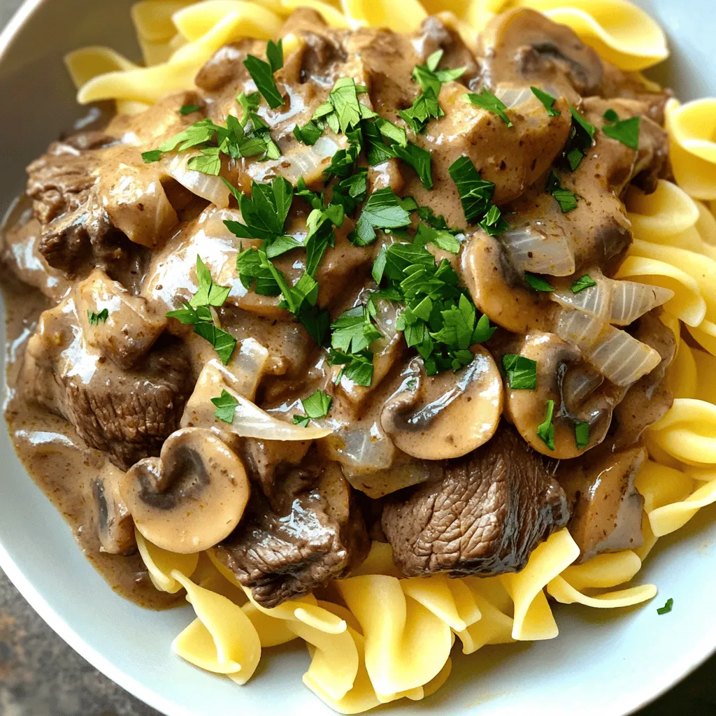 - Thicken the Sauce: If you prefer a thicker stroganoff, whisking in flour with the sour cream helps achieve a creamy texture; adjust as needed.